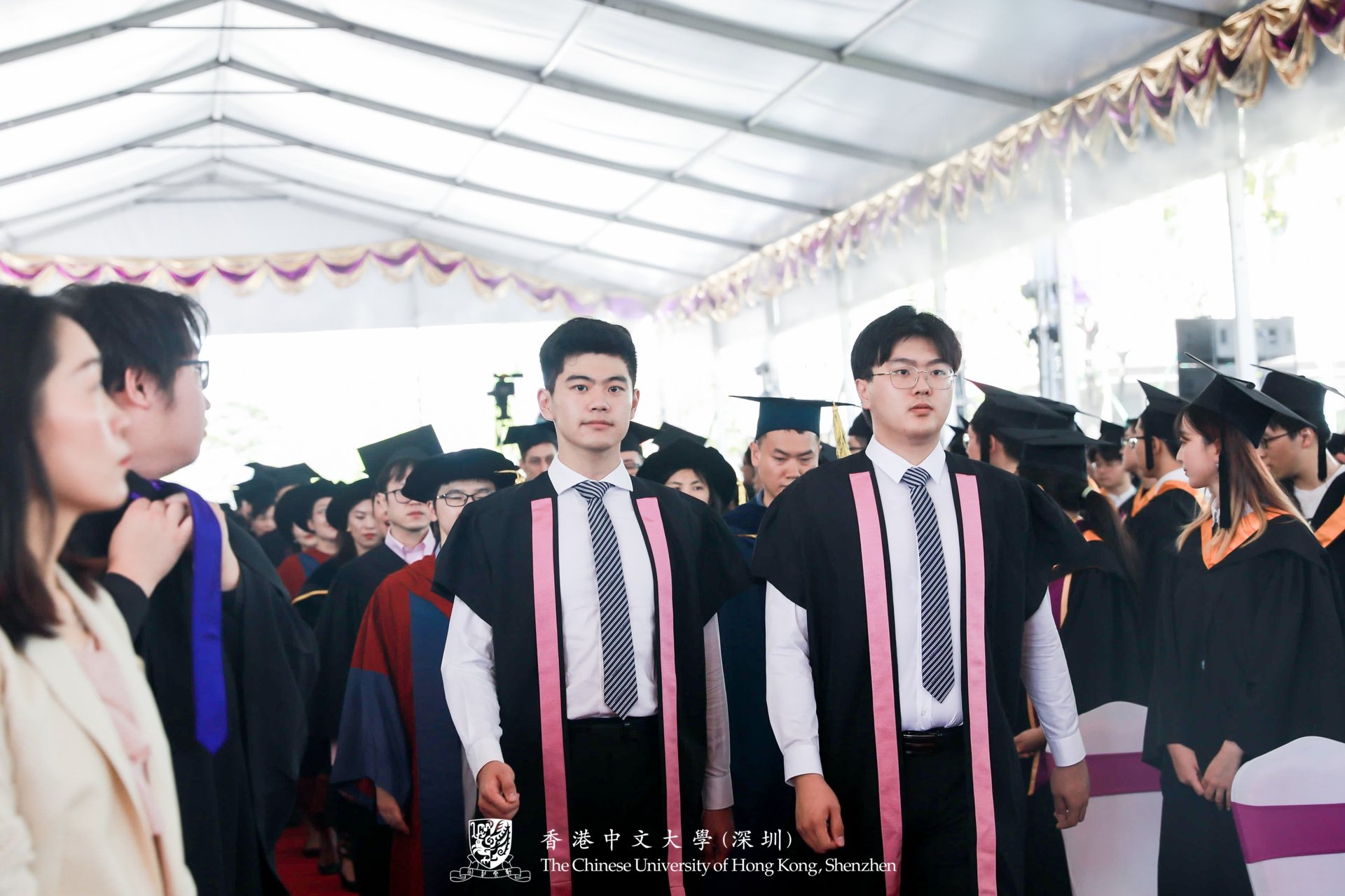 ? ? ? ?上午9時(shí),伴隨著莊嚴(yán)的音樂,典禮行列開始入場,香港中文大學(xué)(深圳)2021年本科生畢業(yè)典禮儀式正式開始。