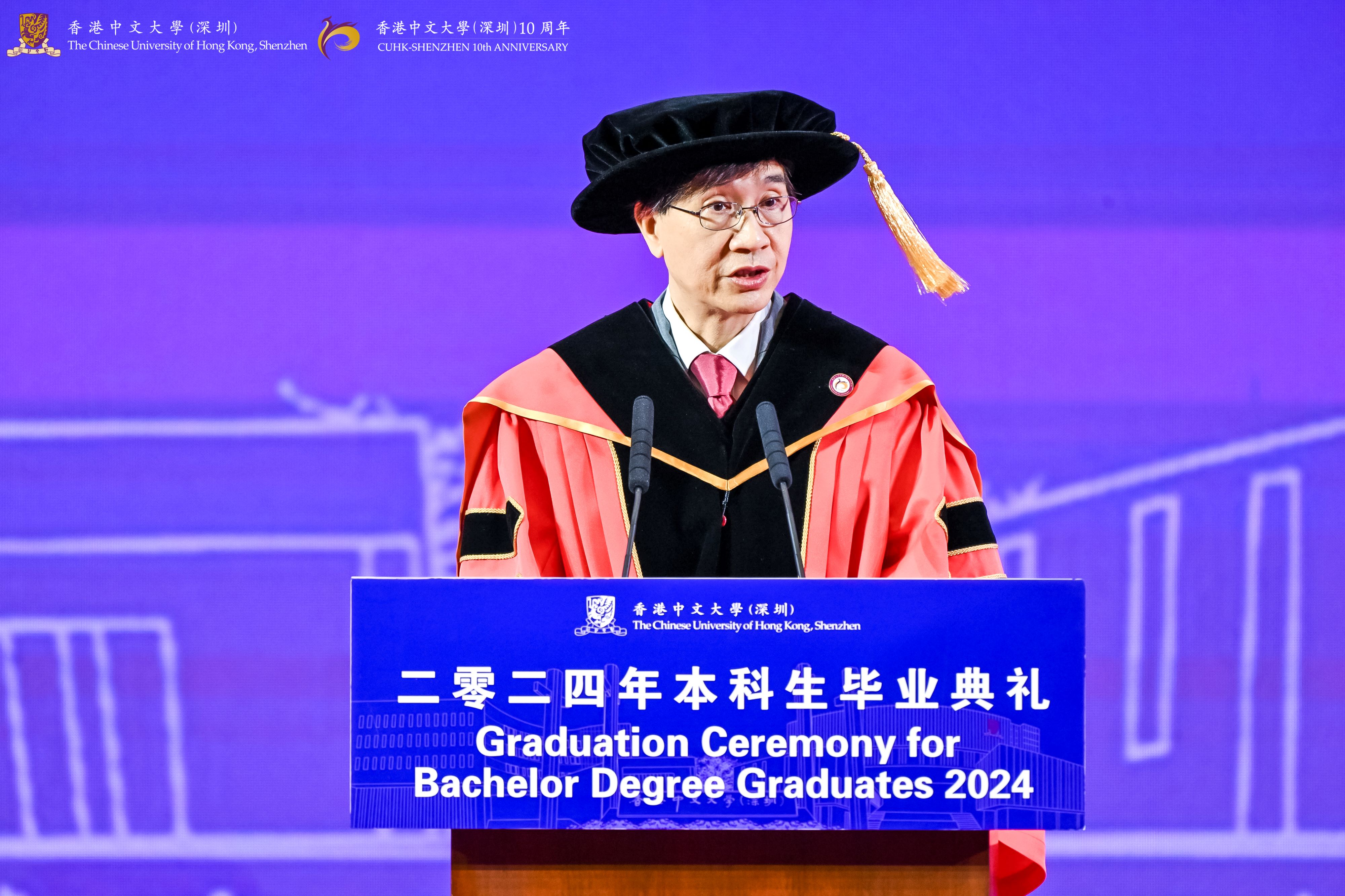 Members of the Governing Board, President?Yangsheng Xu, university officers, and faculty representatives witnessed 1,671 graduates of the Class of 2024 complete their studies and embark on a new journey.?