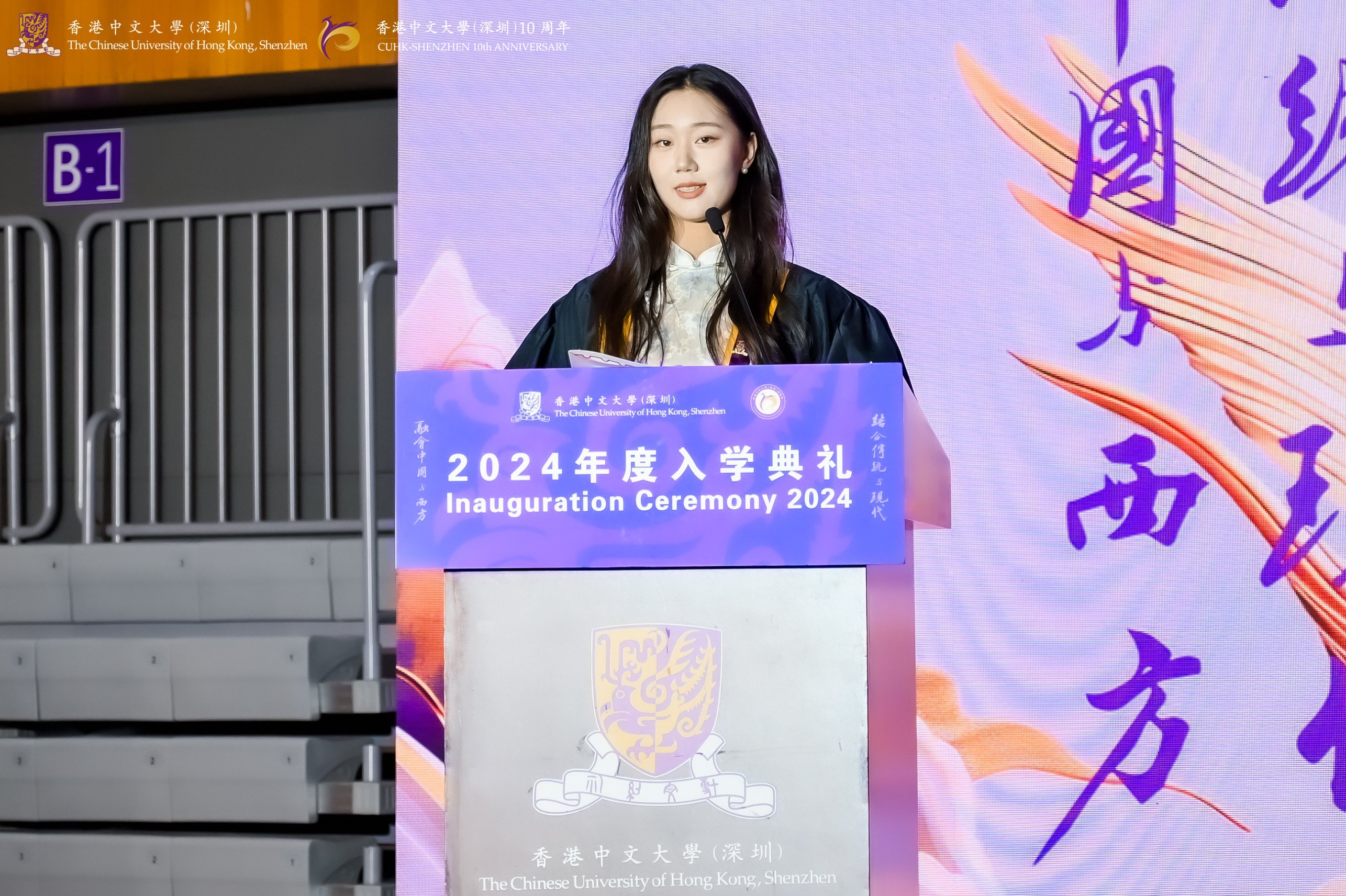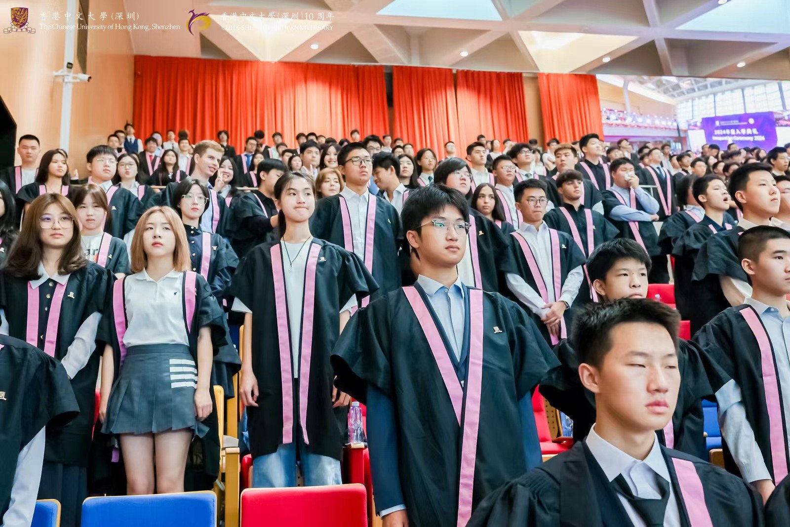 On 1 September, The Chinese University of Hong Kong, Shenzhen held its Inauguration Ceremony 2024. Over 4,000 undergraduate and postgraduate students from across the globe gathered at the “Fairy Lake” to embark on a new chapter in their academic journey. President Yangsheng Xu, alongside university officers, Governing Board members, faculty members, and new undergraduate students, participated in the solemn ceremony at the Liwen Hall, while postgraduate students joined at the University Sports Hall.