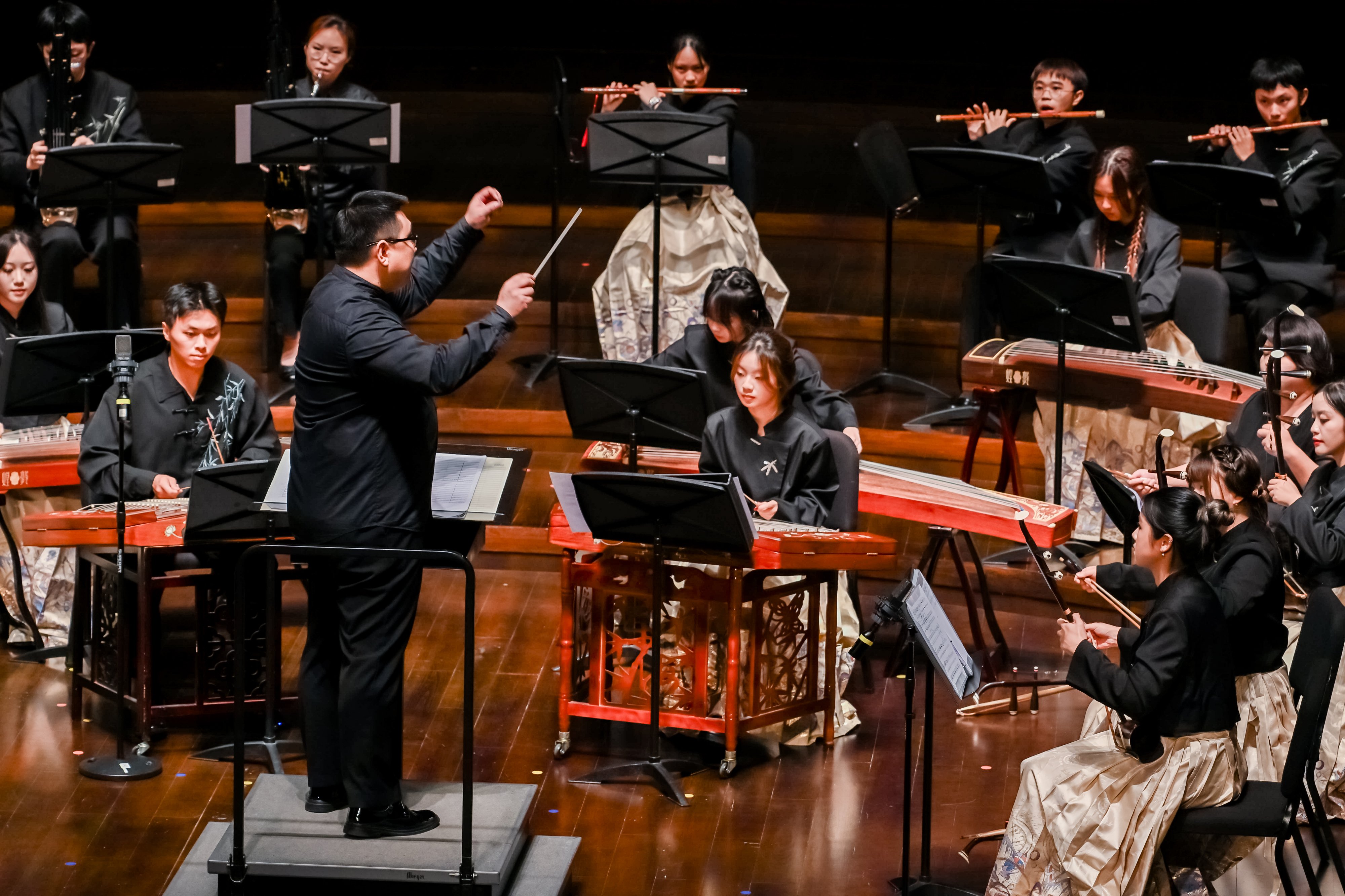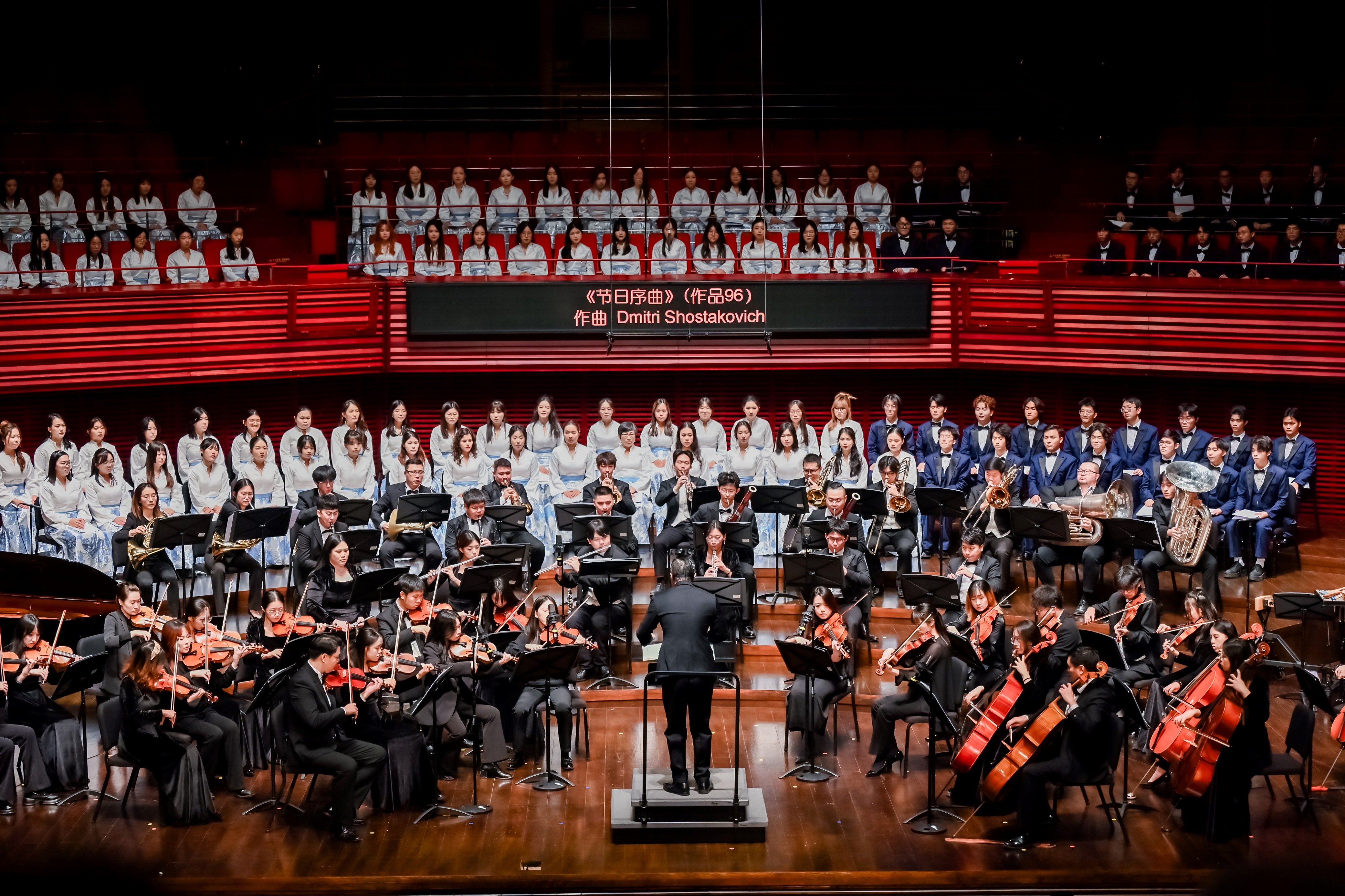 On the evening of November 24th, the 10th Anniversary Tribute Concert of The Chinese University of Hong Kong, Shenzhen was held as scheduled. Professor XU Yangsheng, the President of CUHK-Shenzhen, along with the university management, alumni from home and abroad, faculty, students, parents, and special guests gathered at the Shenzhen Concert Hall to enjoy an artistic feast jointly presented by the CUHK-Shenzhen Chorus, Chinese Orchestra, Orchestra, A Cappella Group, and faculty members from our School of Music. It is worth mentioning that the performance was broadcast live online that evening across multiple platforms, attracting 18,000 friends from both home and abroad to share in this musical feast.