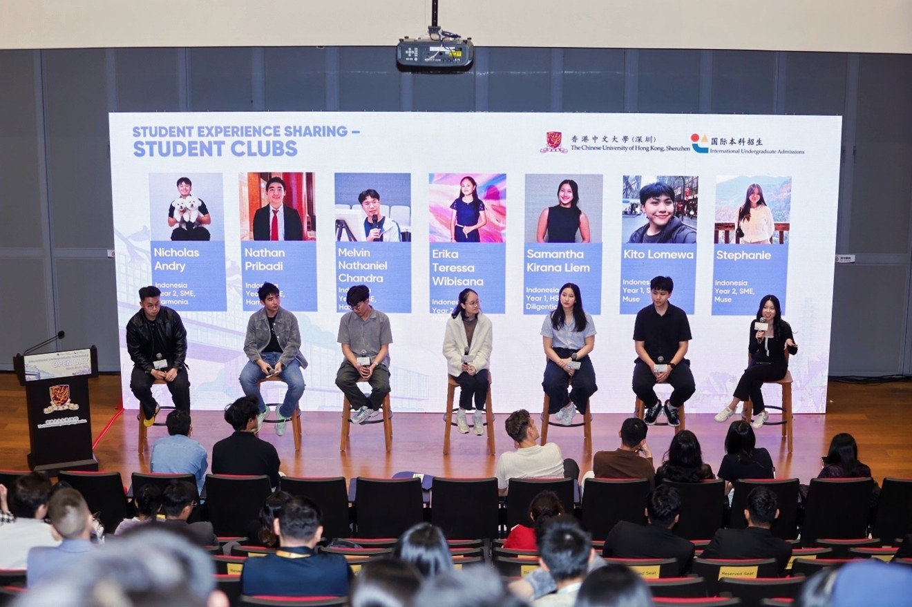 In the Student Sharing Panel, fifteen student representatives from Indonesia, Thailand, Kazakhstan, and Germany shared their life in Shenzhen and their study experience in CUHK-Shenzhen.
