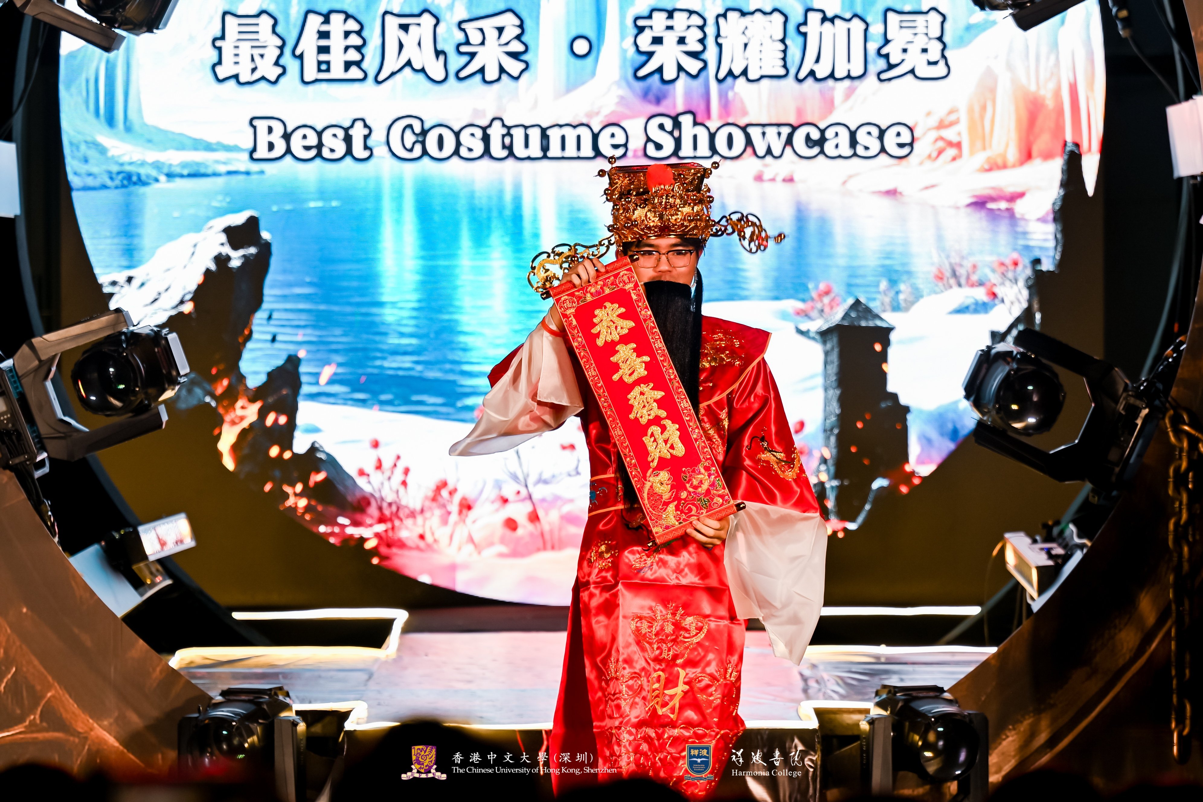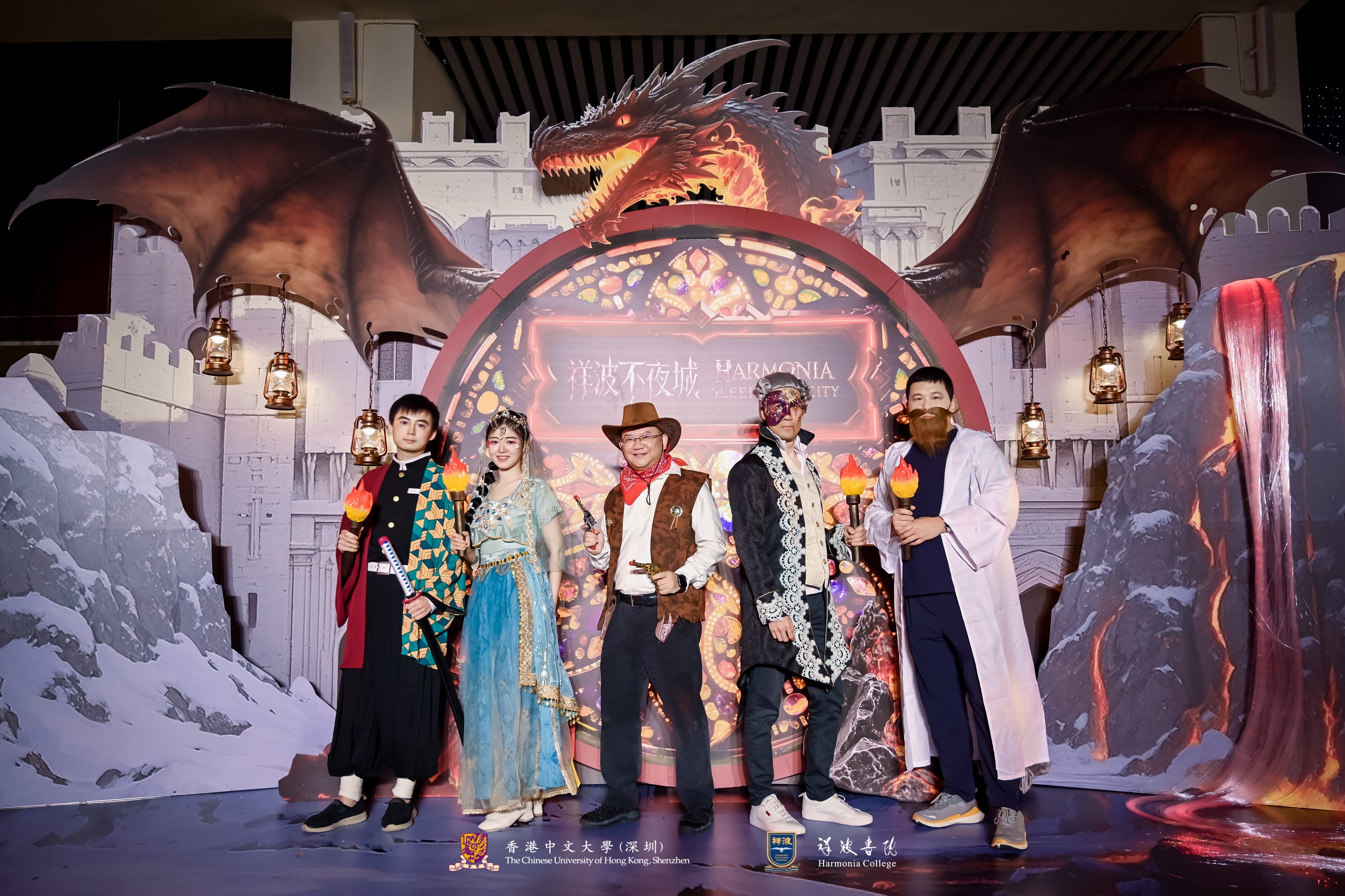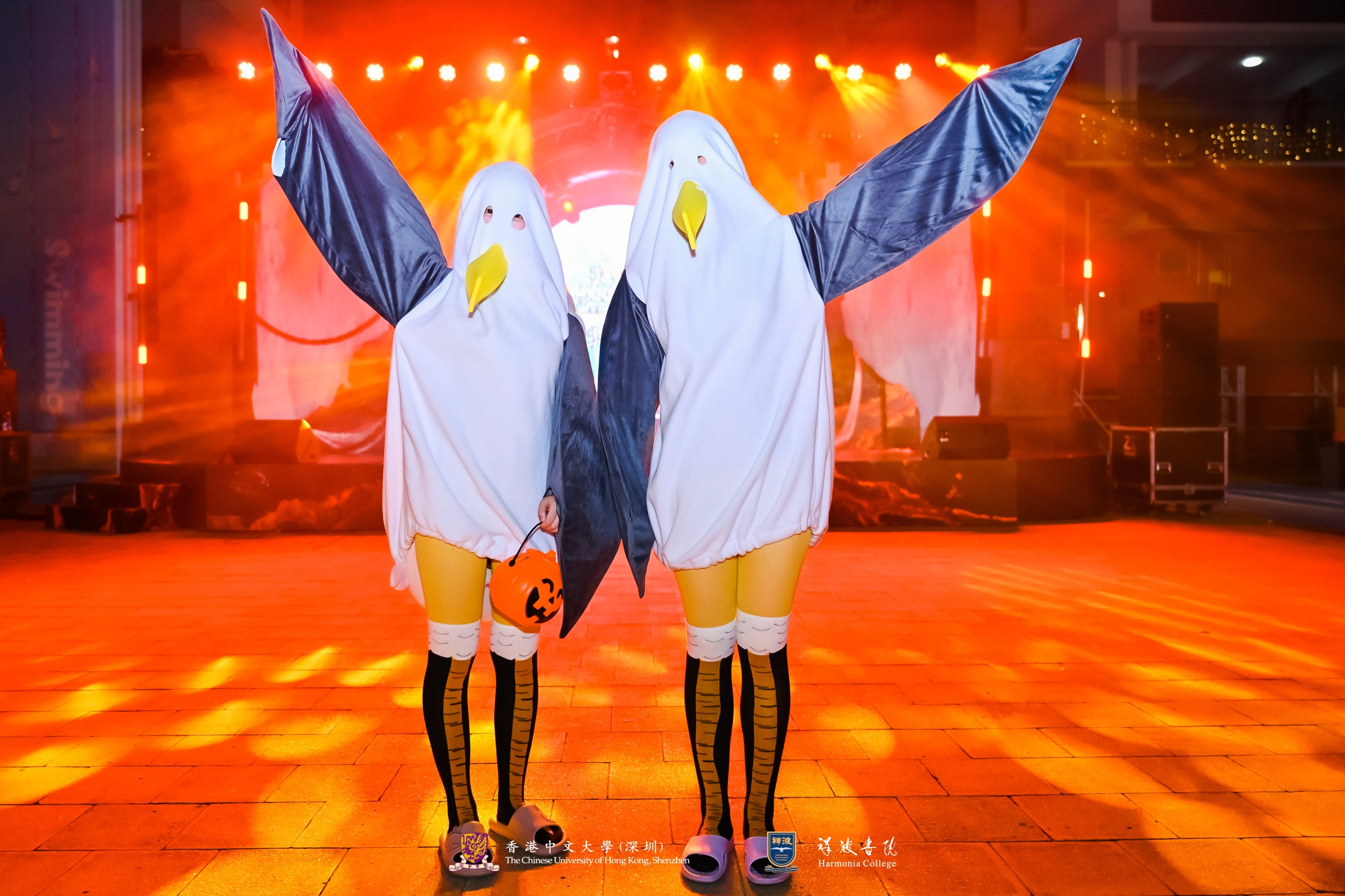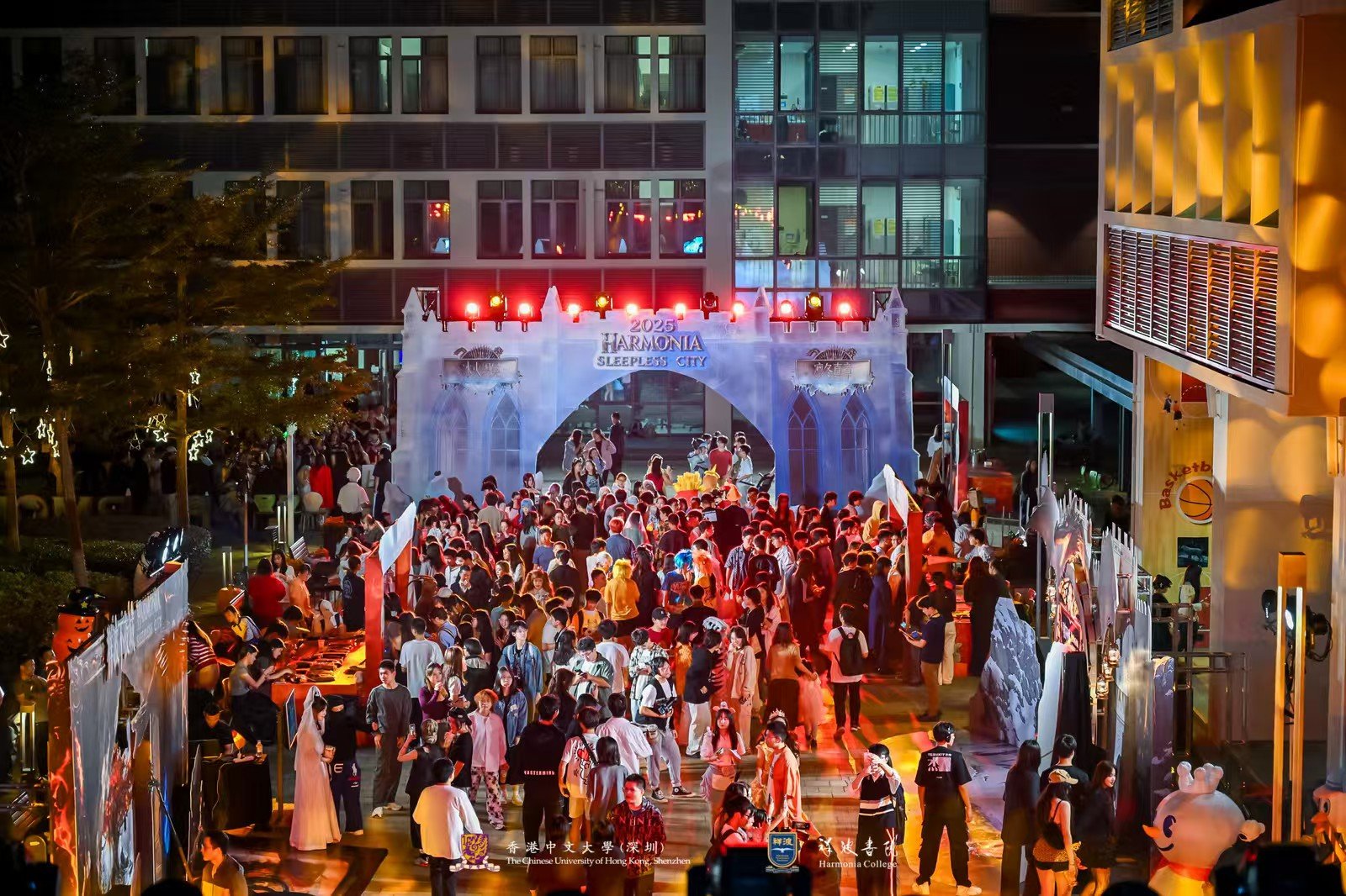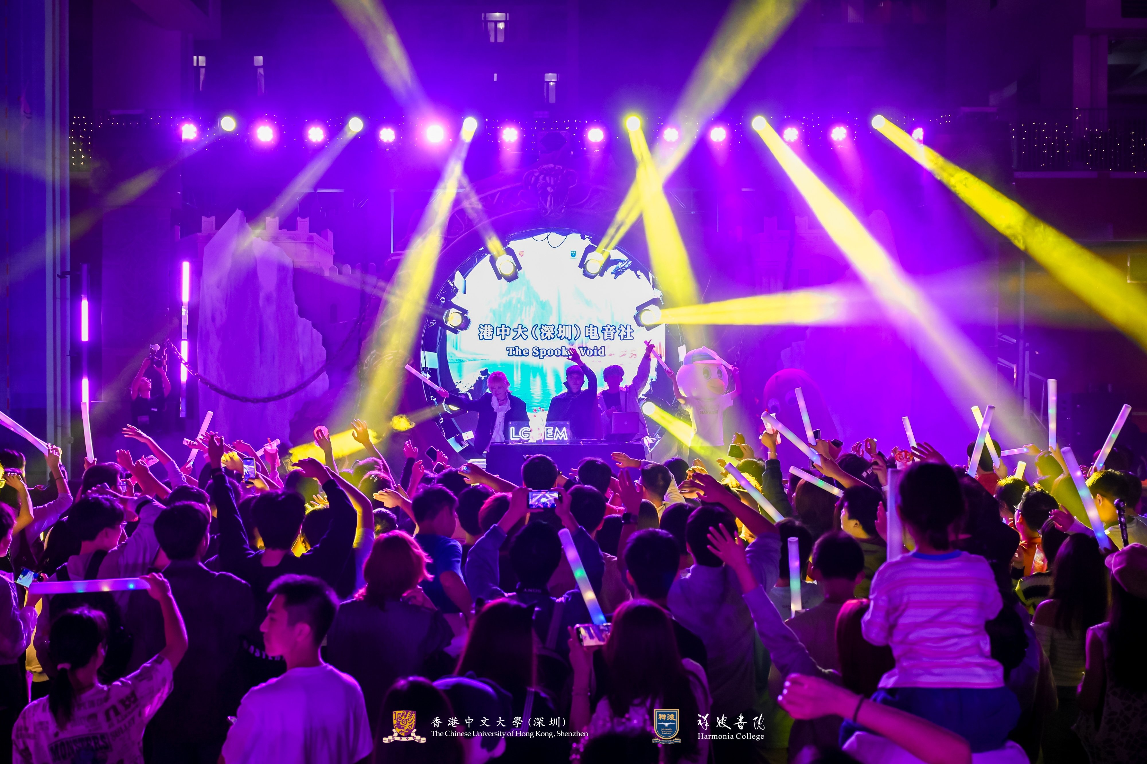 Booths like Cake Lab, Glowing Twistery, and Mask Studio, drew large crowds of students and faculty. From making desserts to crafting pumpkin lanterns and painting masks, the night was filled with laughter and excitement. The CUHKSZ Electronic Music Club, Harmonia College Hurricane Dance Team, and Hip-Hop Music Club took turns on stage, igniting the atmosphere with beats, dance, and rap performances.