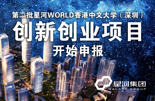 We are accepting application for?the Chinese University of Hong Kong, Shenzhen Student Entrepreneur Project?from all. Galaxy World & Hong Kong Chinese University (Shenzhen) Student Entrepreneur Project was based on the cooperation between Galaxy World Group and CUHK(SZ) on?student entrepreneurship. Galaxy Group guaranteed the provision of office space, and some financial supports in the form of donation. Please kindly pay attention to the following notification: