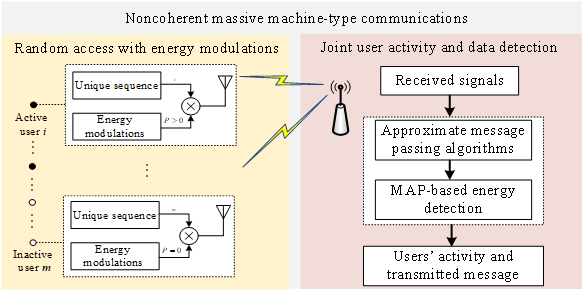 Massive Machine-Type Communications is an important scenario and key technology for future wireless communications. In such a scenario, the base station needs to support massive device access; however, only a small number of devices are often active in the same time period and need to access the base station, i.e., the access of devices is sparse. The detection of active users and the recovery of user transmission information are hot issues in the research of next-generation networks. Unlike previous studies, this paper focuses on energy modulation for non-coherent communication in short-packet transmission and low SNR scenarios, which features higher system throughput than coherent transmission.