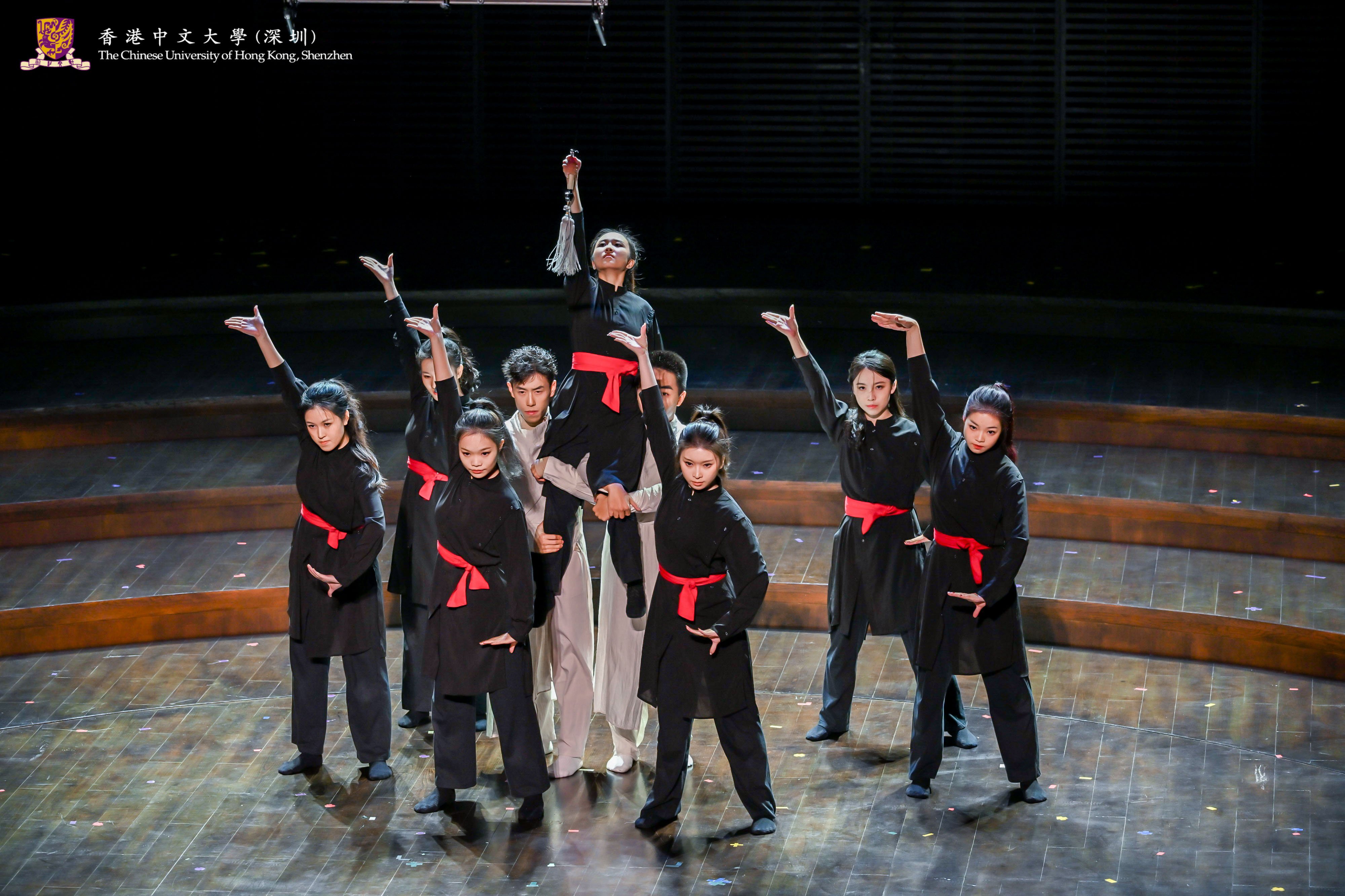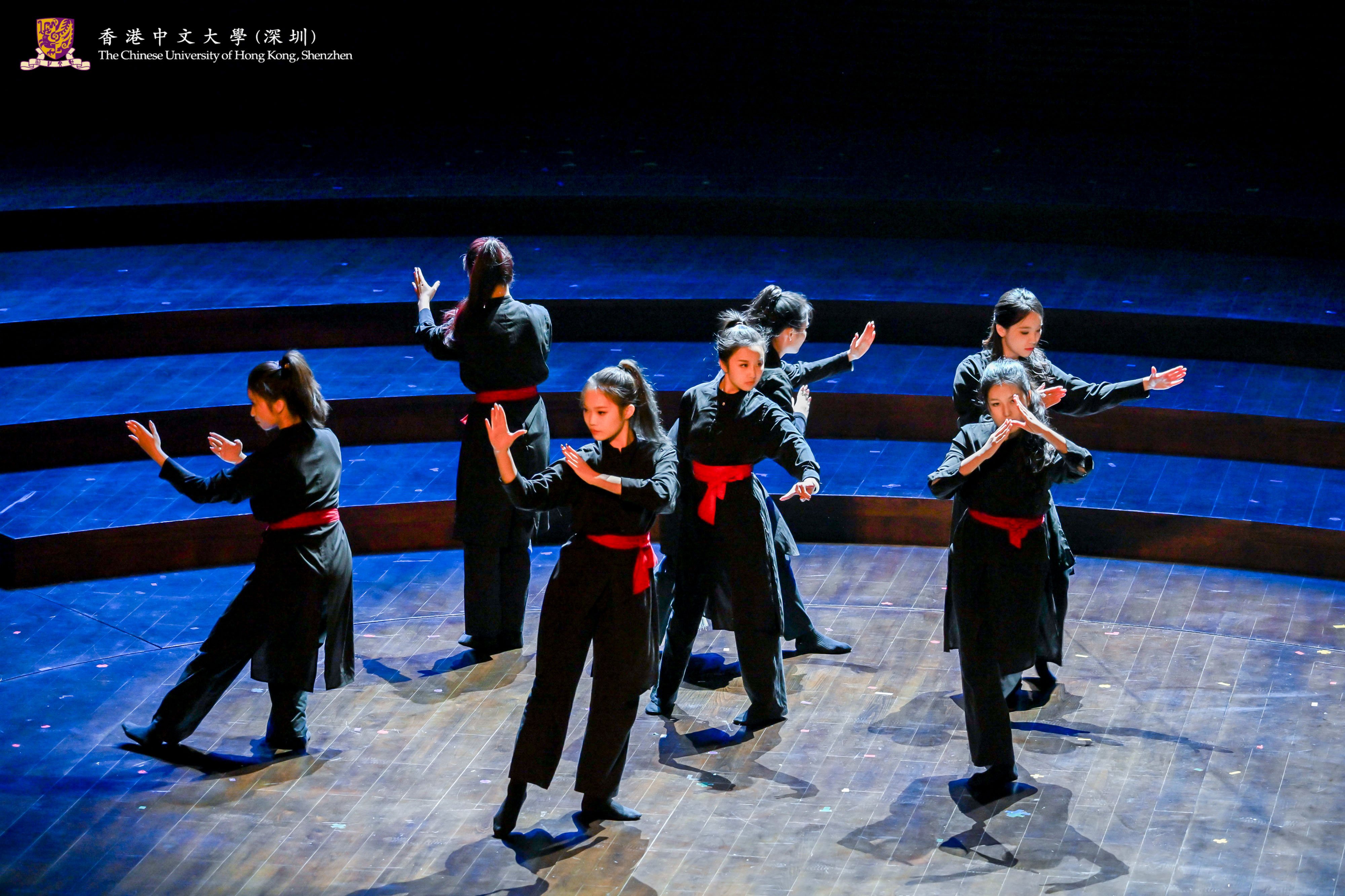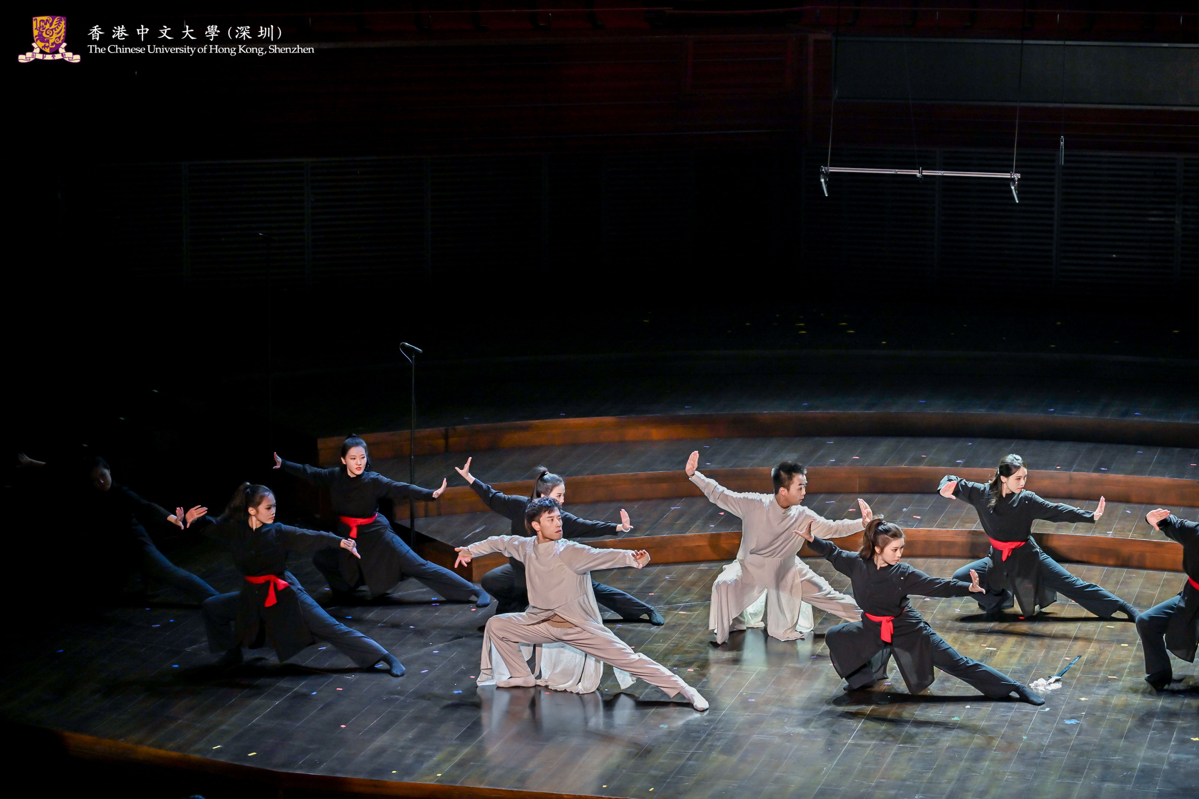 In this concert, not only the Chinese Orchestra of CUHK-Shenzhen presented a wonderful performance of Trying the Horse in Spring Countryside and New Scenes in Dunhuang, but also the A Cappella Group of CUHK-Shenzhen sang Hey Momma / Hit the Road, Jack and Waving Through a Window. Young Dance of Ling College, Martial Arts Club and choreographer Li Ziyi presented an original martial arts dance production, Nan Cheng, which gave the audience a taste of the charm of traditional martial arts and modern dance. The Chorus of CUHK-Shenzhen presented three songs, Ocean of Stars, The Letter under the Moonlight and Boundless Oceans Vast Skies, which conveyed the power and emotion of their songs and showed the personality of youth. The Chamber Group of CUHK-Shenzhen presented a saxophone quartet, Fly Me to the Moon, with a melodious sound.