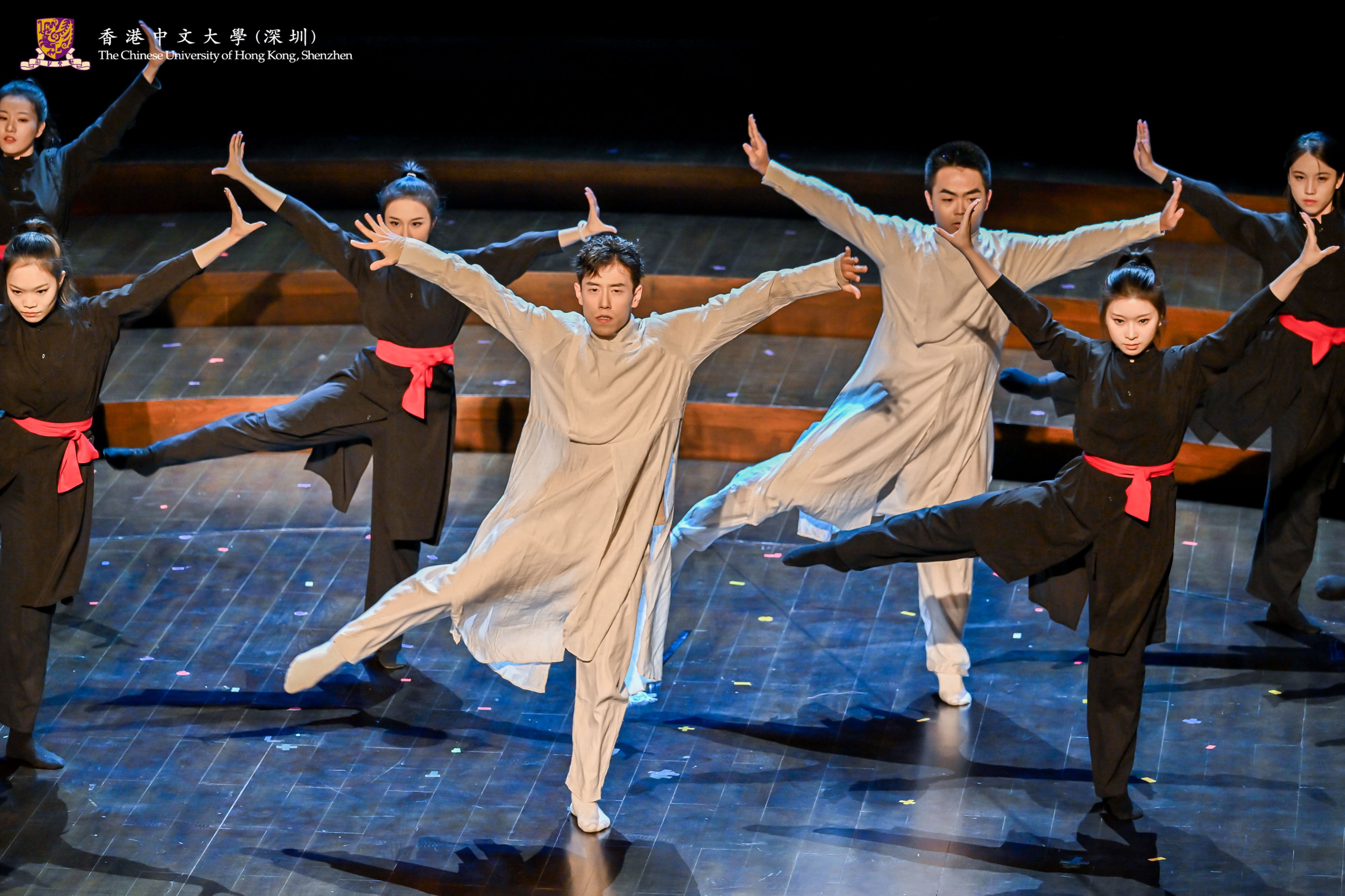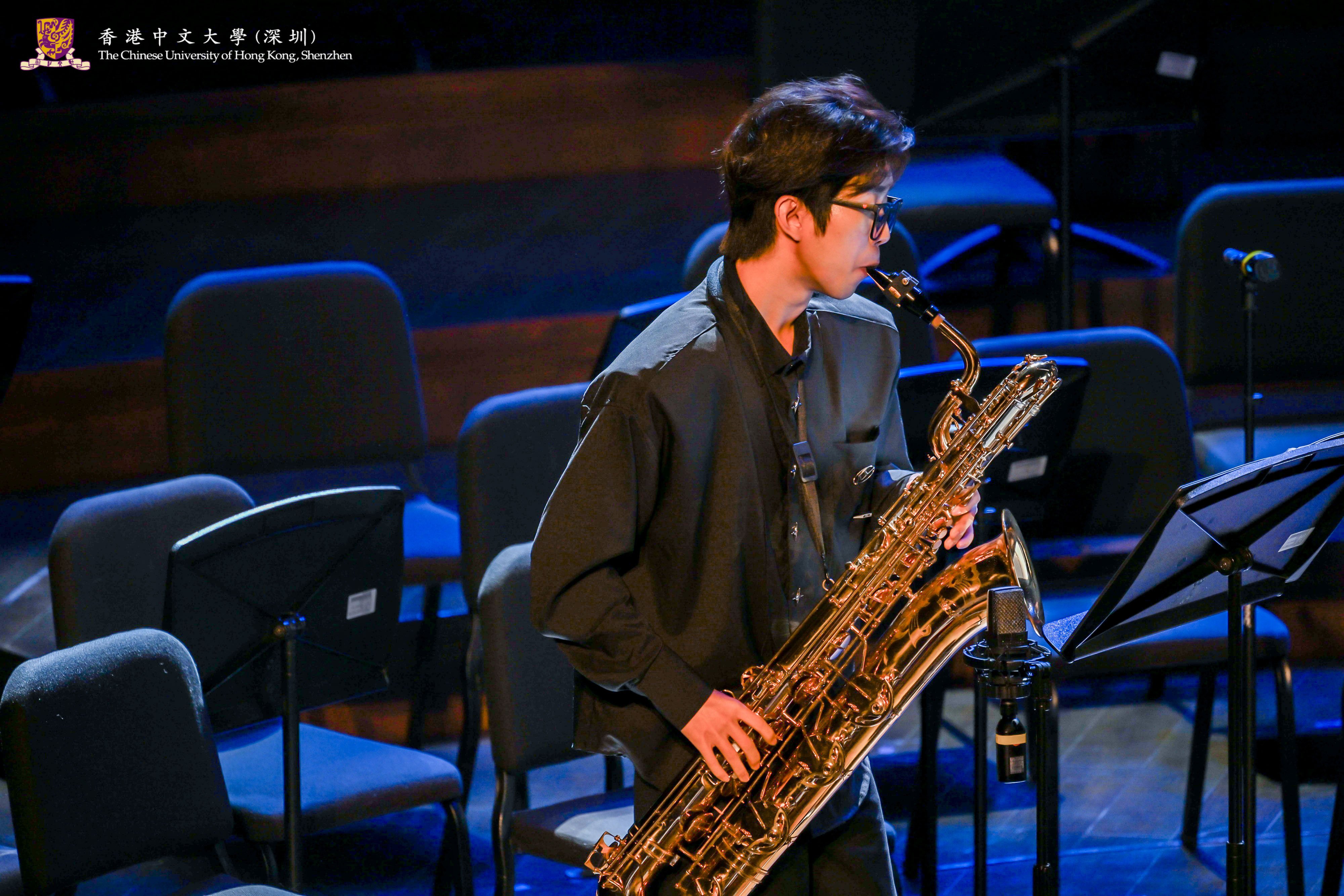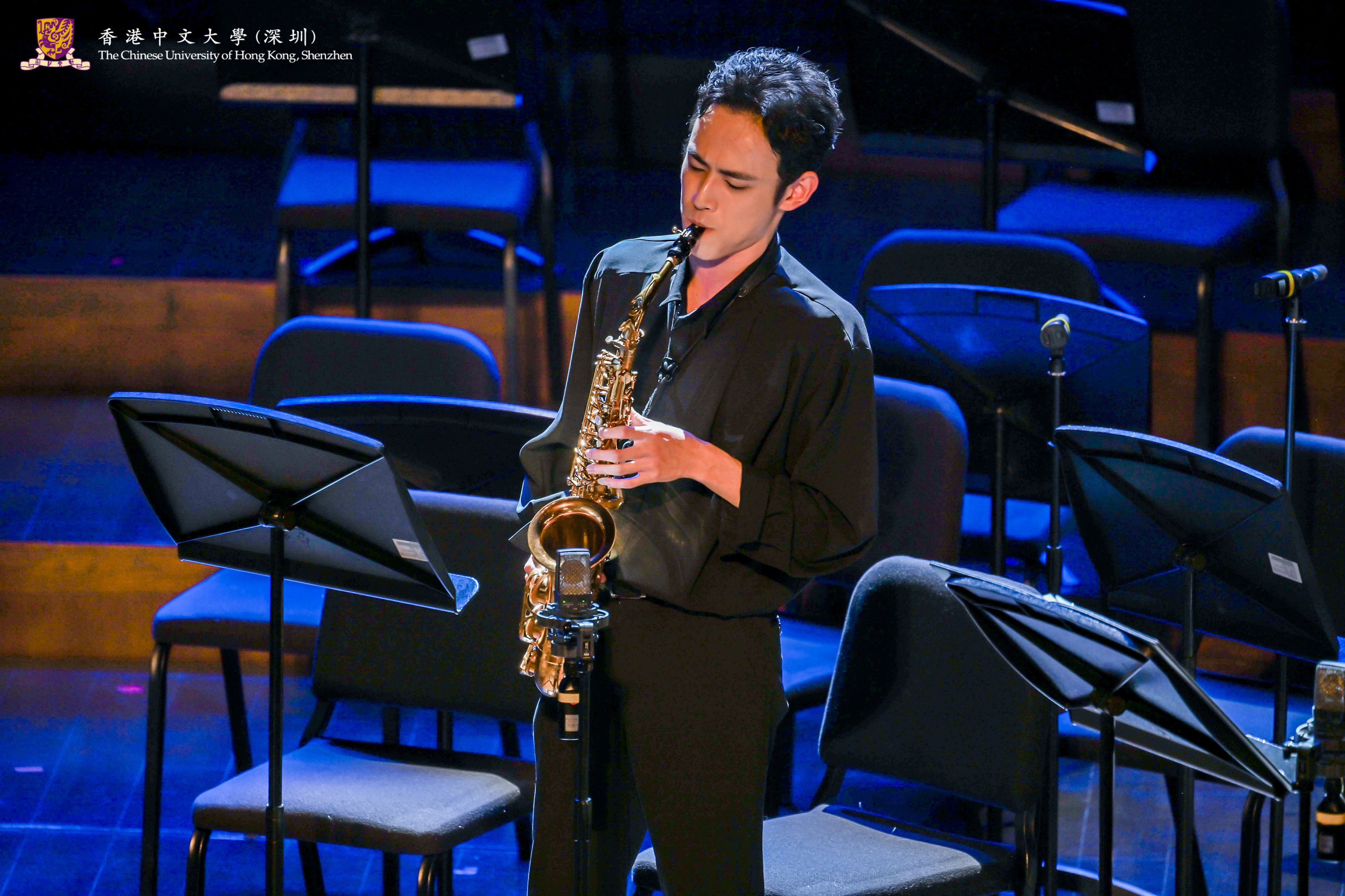 In this concert, not only the Chinese Orchestra of CUHK-Shenzhen presented a wonderful performance of Trying the Horse in Spring Countryside and New Scenes in Dunhuang, but also the A Cappella Group of CUHK-Shenzhen sang Hey Momma / Hit the Road, Jack and Waving Through a Window. Young Dance of Ling College, Martial Arts Club and choreographer Li Ziyi presented an original martial arts dance production, Nan Cheng, which gave the audience a taste of the charm of traditional martial arts and modern dance. The Chorus of CUHK-Shenzhen presented three songs, Ocean of Stars, The Letter under the Moonlight and Boundless Oceans Vast Skies, which conveyed the power and emotion of their songs and showed the personality of youth. The Chamber Group of CUHK-Shenzhen presented a saxophone quartet, Fly Me to the Moon, with a melodious sound.