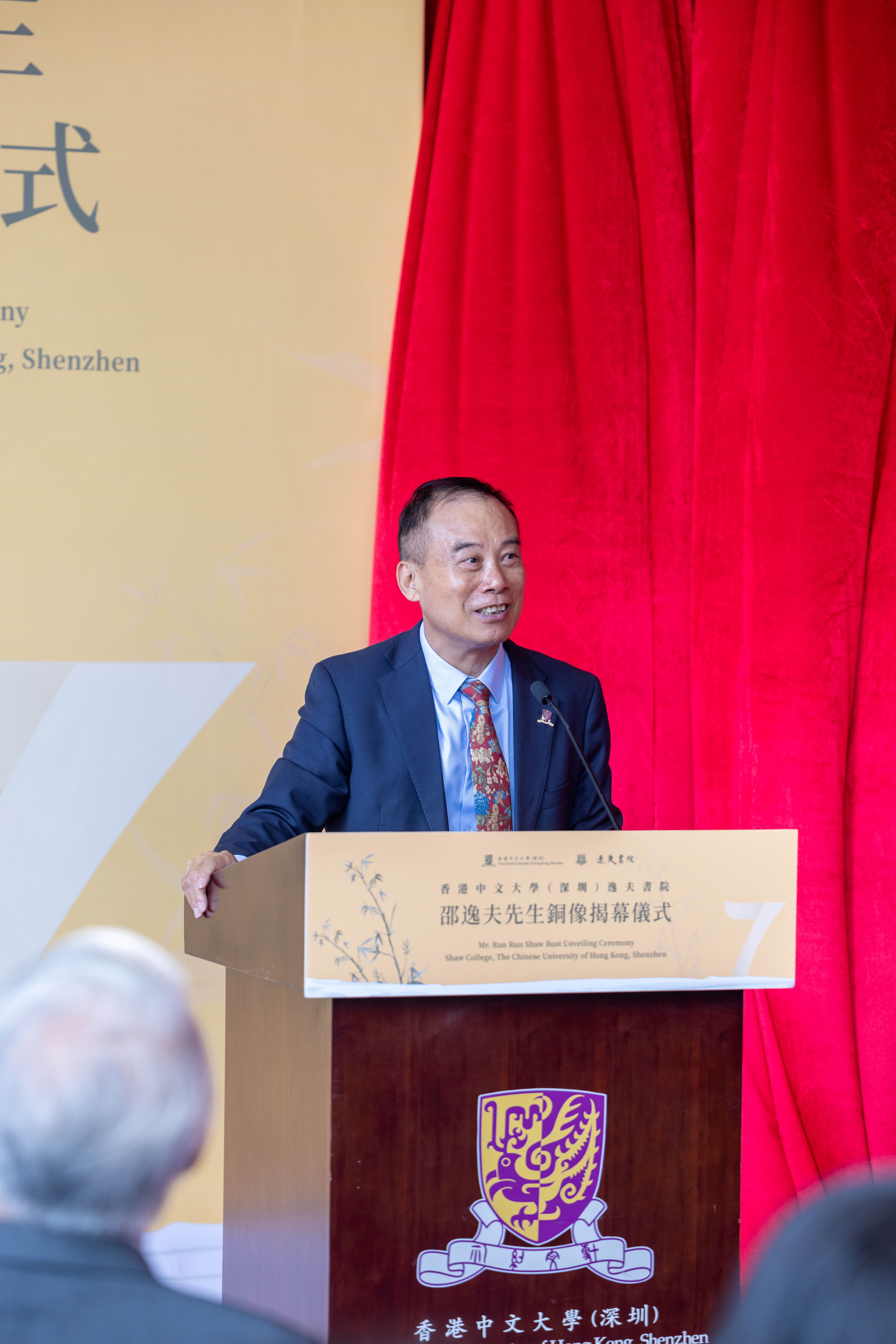In his address, President Yangsheng Xu expressed gratitude for the care and support of Mr. and Mrs. Shaw and The Shaw Foundation, which have significantly propelled the educational endeavours of CUHK-Shenzhen. He stated, "Today, as we unveil Mr. Run Run Shaw's bust, we aim to eternally memorialize his contributions to our university and its members. Furthermore, we aspire to perpetually disseminate Mr. Shaw's spirit of lofty benevolence and his philanthropic ethos within Shaw College and across our university community."