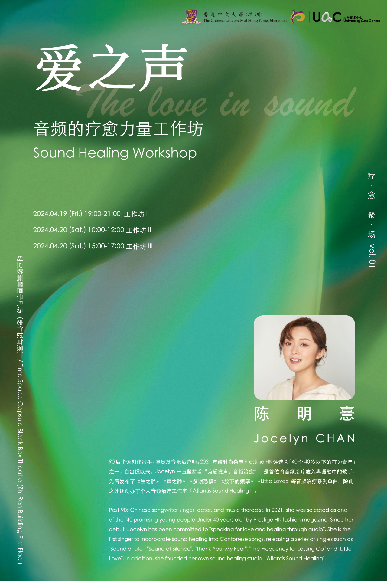 In 2021, she was selected as one of the “40 promising young people Under 40 years old” by Prestige HK fashion magazine. Since her debut, Jocelyn has been committed to “speaking for love and healing through audio”. She is the first singer to incorporate sound healing into Cantonese songs, releasing a series of singles such as?Sound of Life, Sound of Silence, Thank You, My Fear, The Frequency for Letting Go?and?Little Love.?Sound of Silence?and?Thank You,?My Fear?both achieved the top rank on the Hong Kong Radio Chinese Song Chart. In addition, she founded her own sound healing studio, “Atlantis Sound Healing”. In 2023, she held an individual sound healing exhibition titled?Sounds of Serenity.