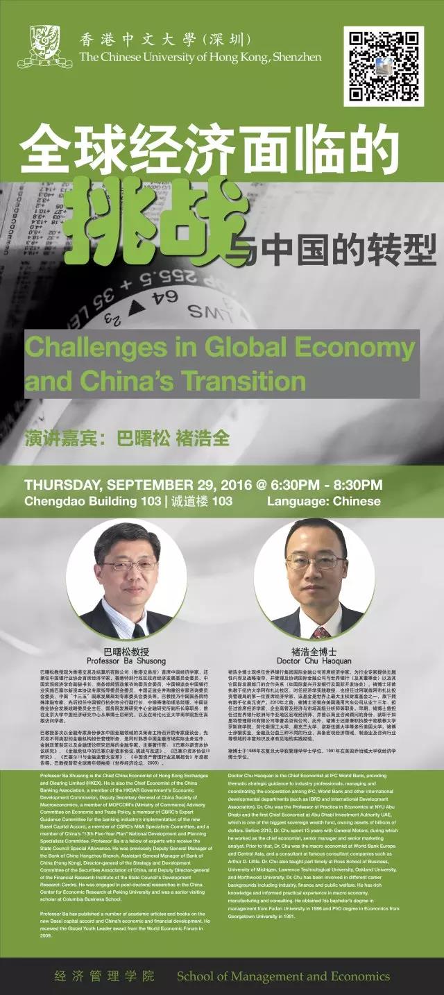 Lecture Invitation| Challenges in Global Economy and China’s Transition