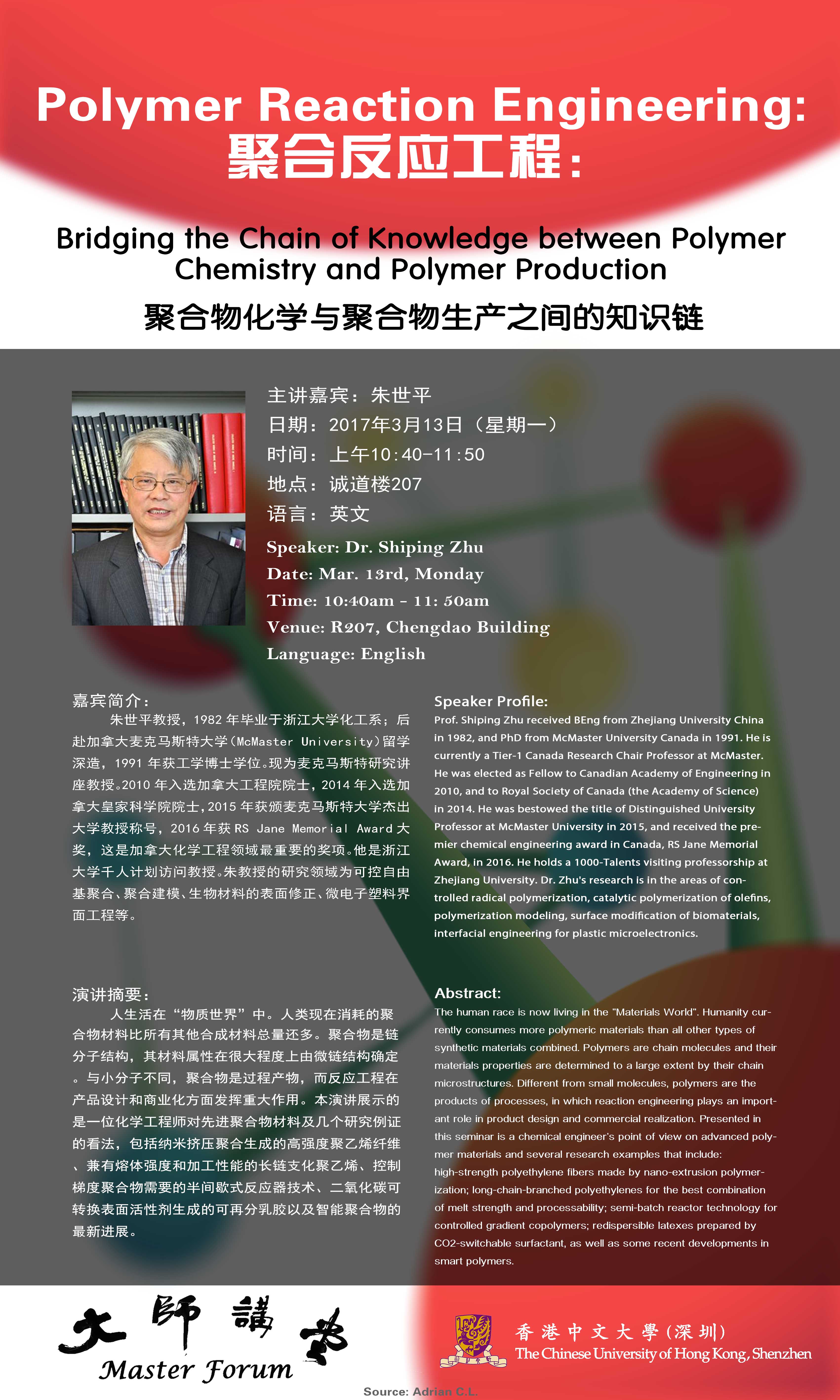 【Master Forum】Polymer Reaction Engineering: Bridging the Chain of Knowledge between Polymer Chemistry