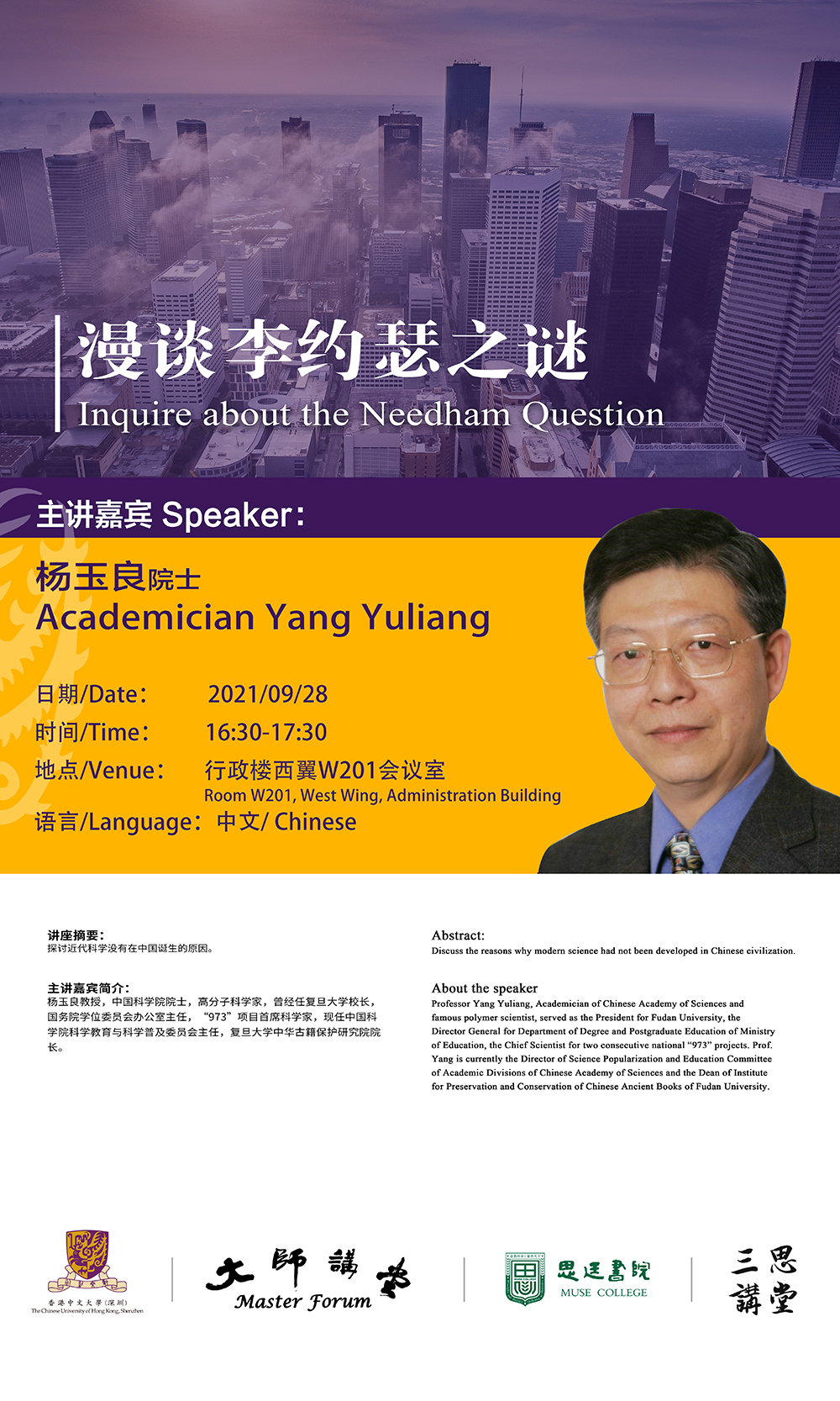 Professor Yang Yuliang, Academician of Chinese Academy of Sciences and famous polymer scientist, served as the President for Fudan University, the Director General for Department of Degree and Postgraduate Education of Ministry of Education, the Chief Scientist for two consecutive national “973” projects. Prof. Yang is currently the Director of Science Popularization and Education Committee of Academic Divisions of Chinese Academy of Sciences and the Dean of Institute for Preservation and Conservation of Chinese Ancient Books of Fudan University.