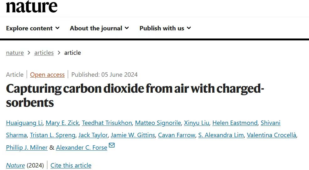 理工學(xué)院李懷光教授在Nature發(fā)表空氣中直接碳捕集的最新研究
