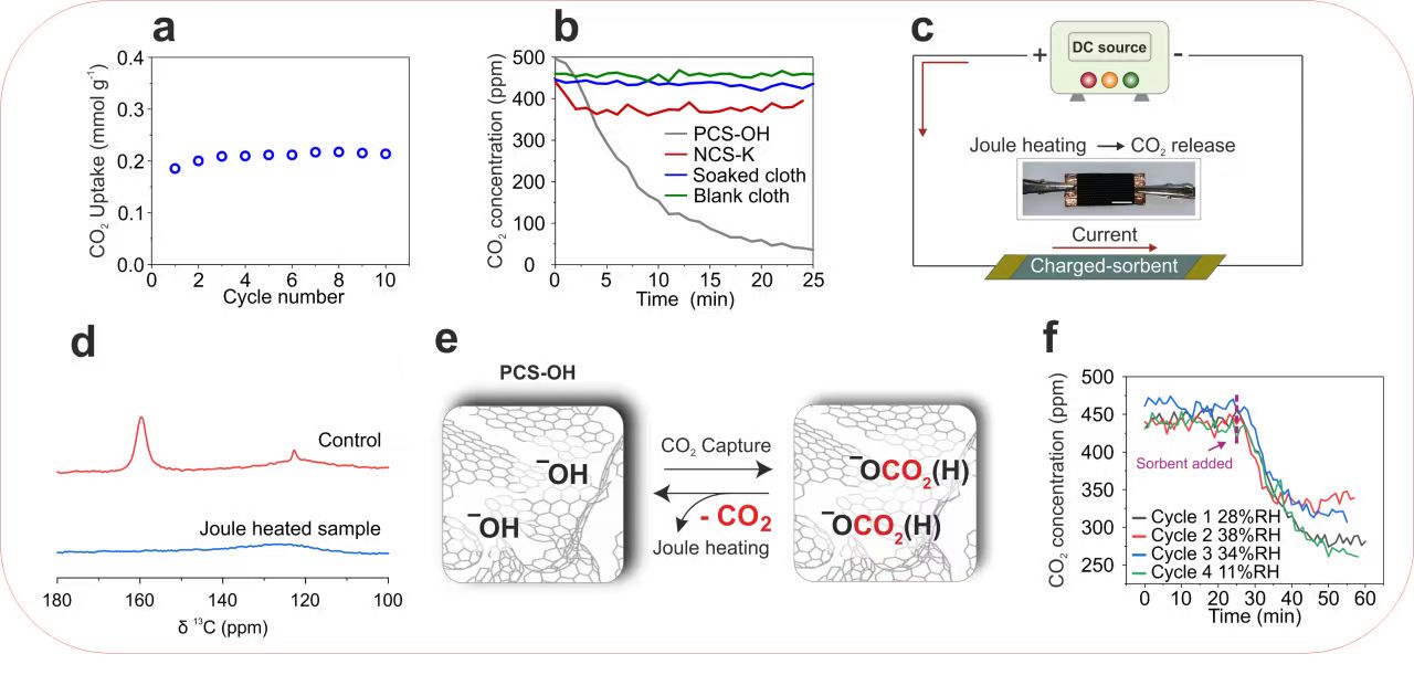 圖2.帶電吸附劑的直接空氣中捕獲與焦耳熱再生
