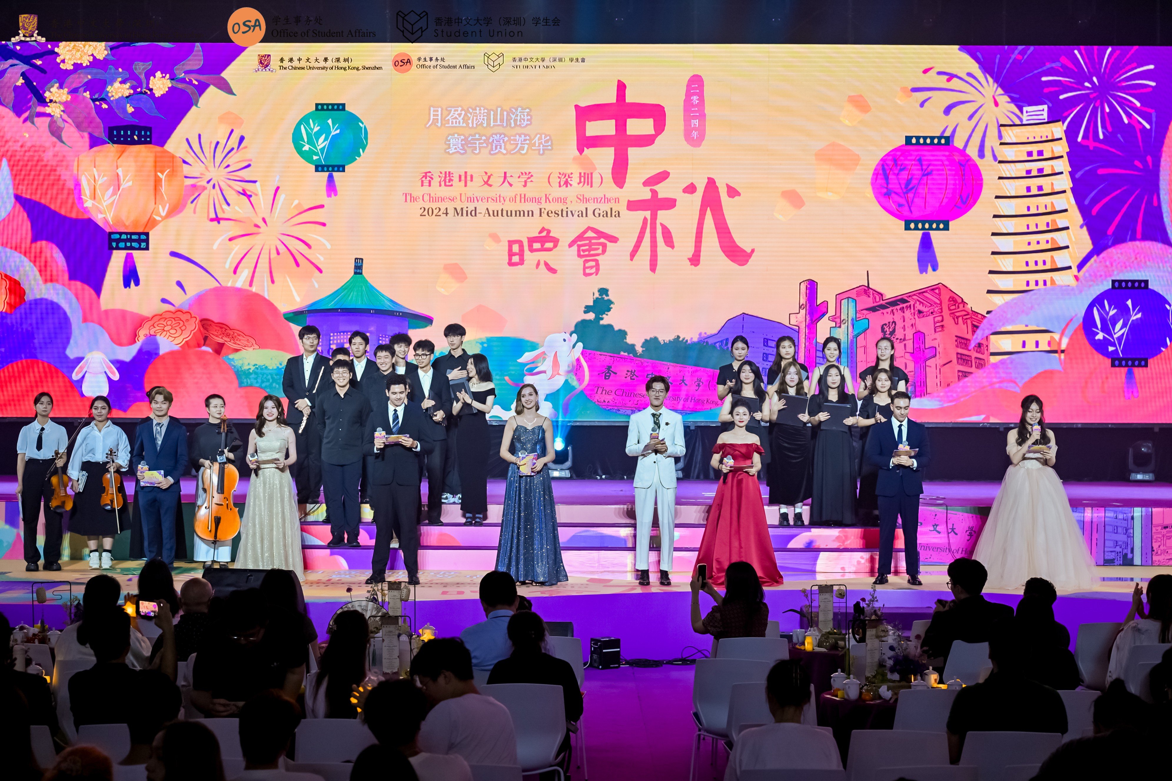 月盈滿山海,寰宇賞芳華。9月13日,由學生事務處聯合學生會舉辦的2024年中秋晚會隆重開啟,師生歡聚一堂,共度中秋月圓夜。