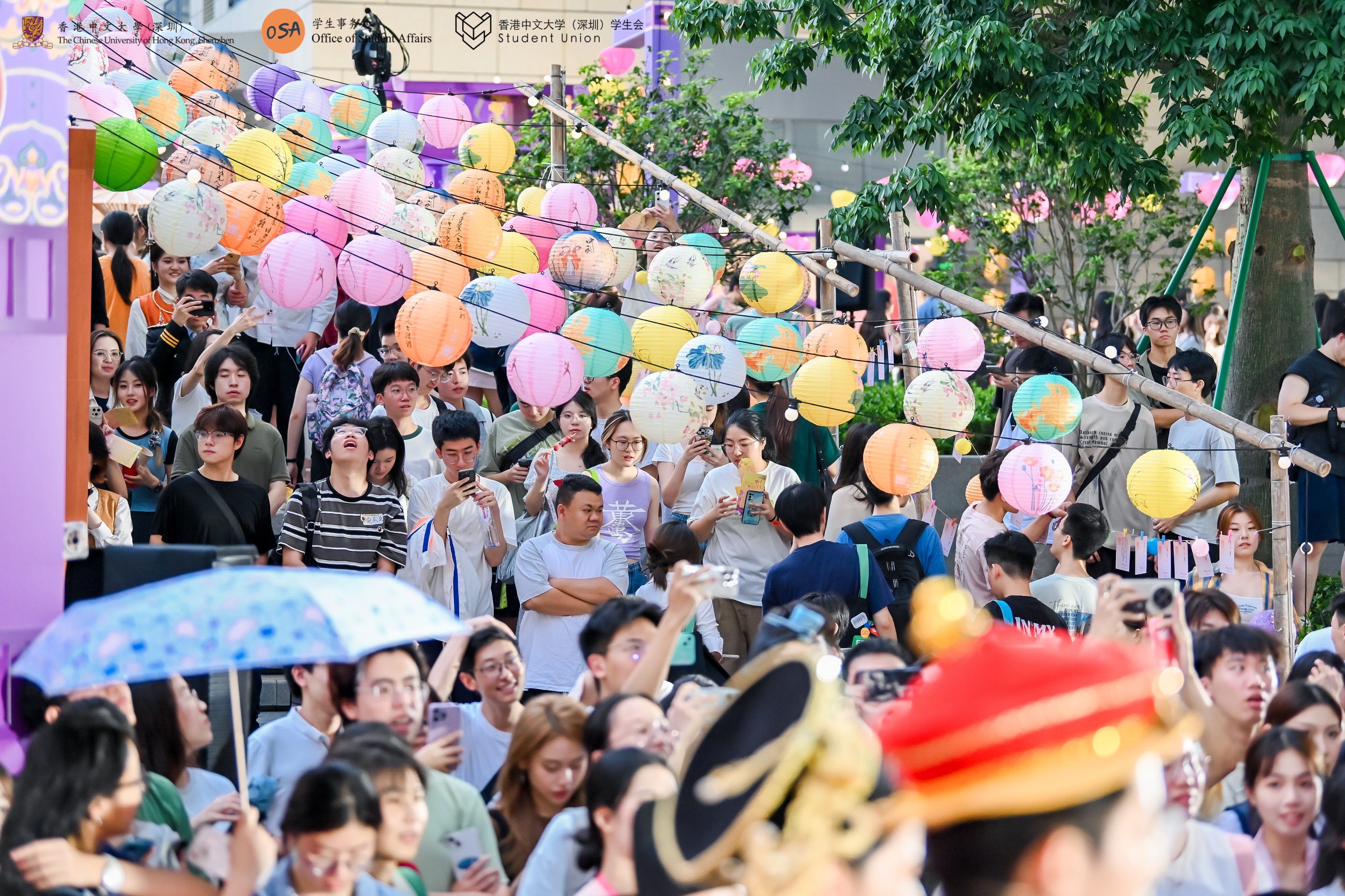 晚會開場前,外場2小時的沉浸式游園活動讓師生在社團攤位、特色攤位和小劇場活動中體驗了一場穿越古今的盛世華宴。游園會現場張燈結彩,熱鬧非凡,營造出濃郁的中秋氛圍。