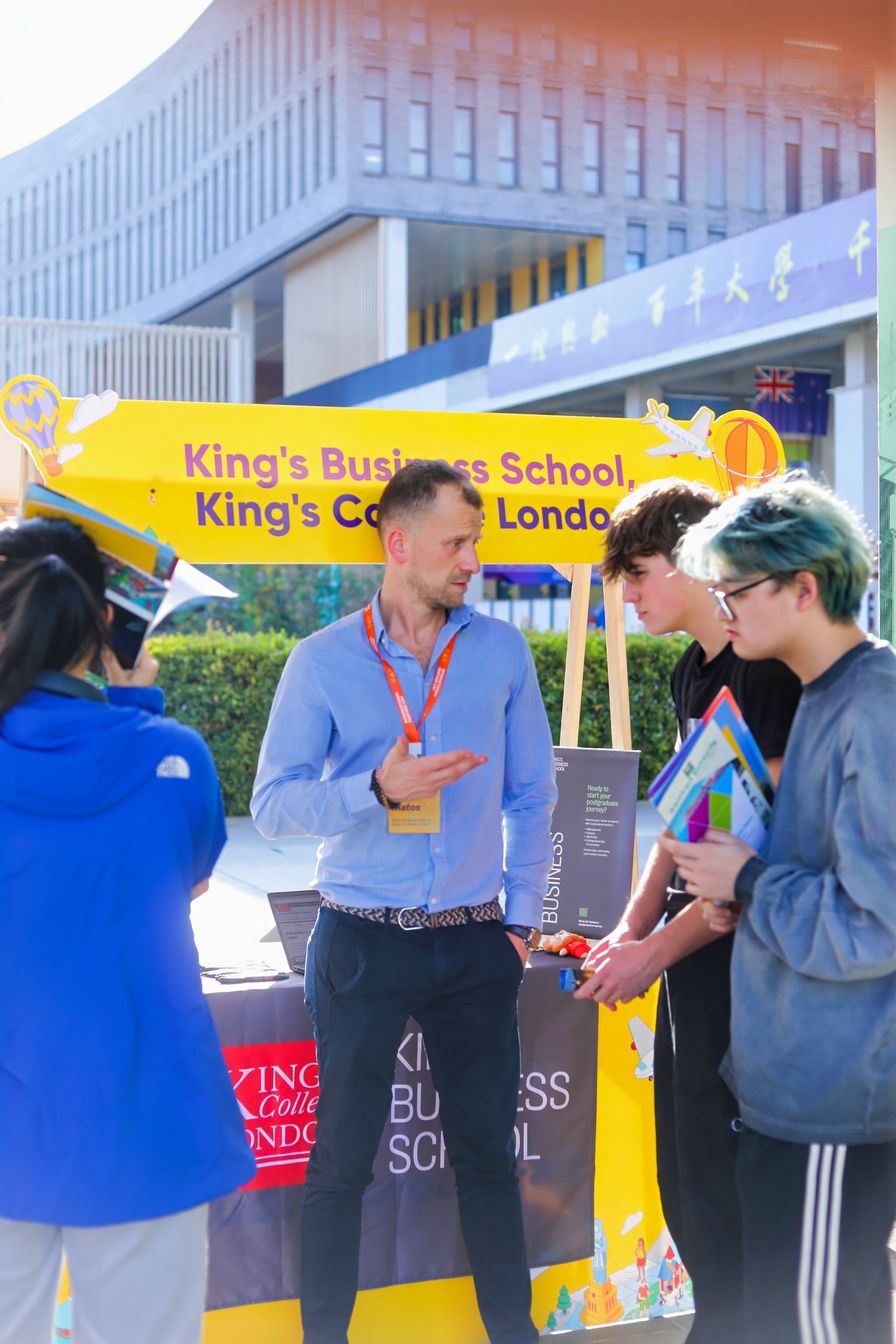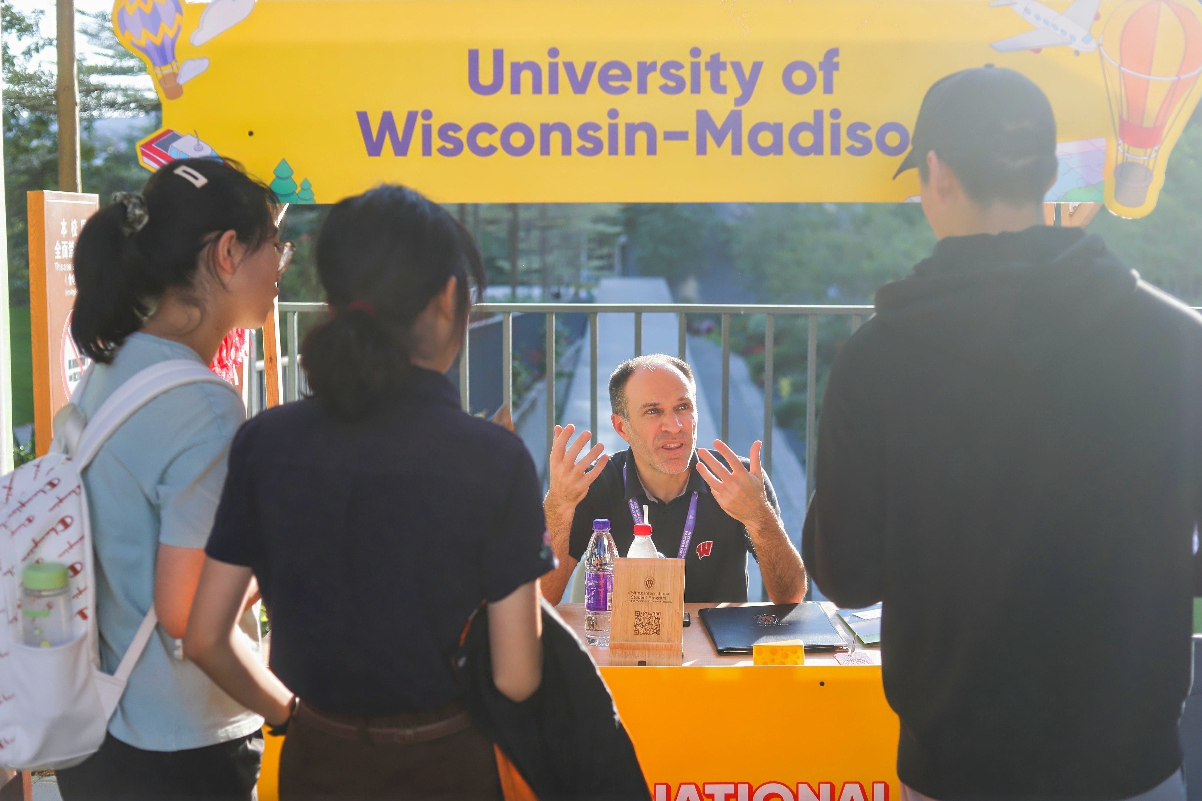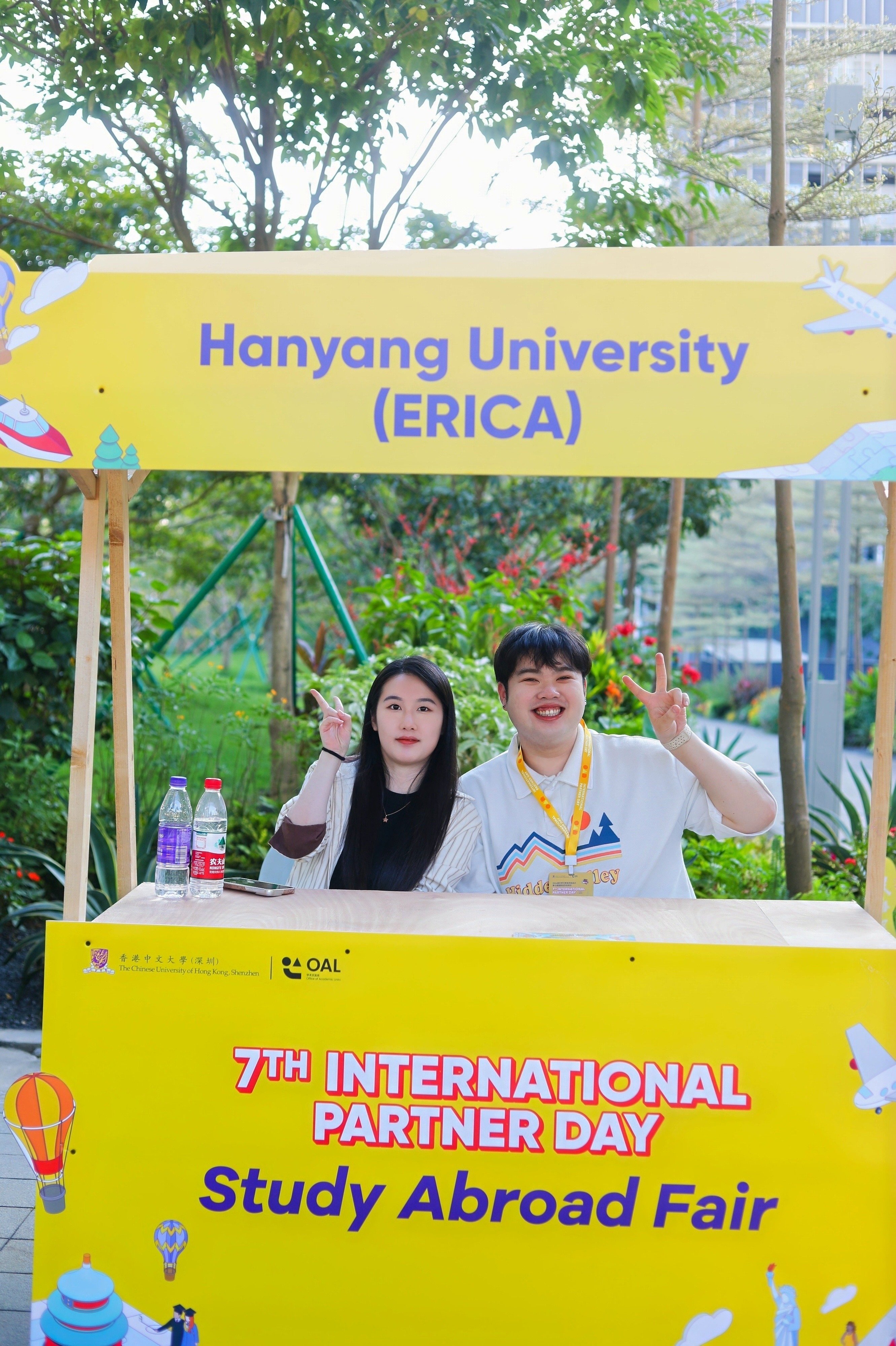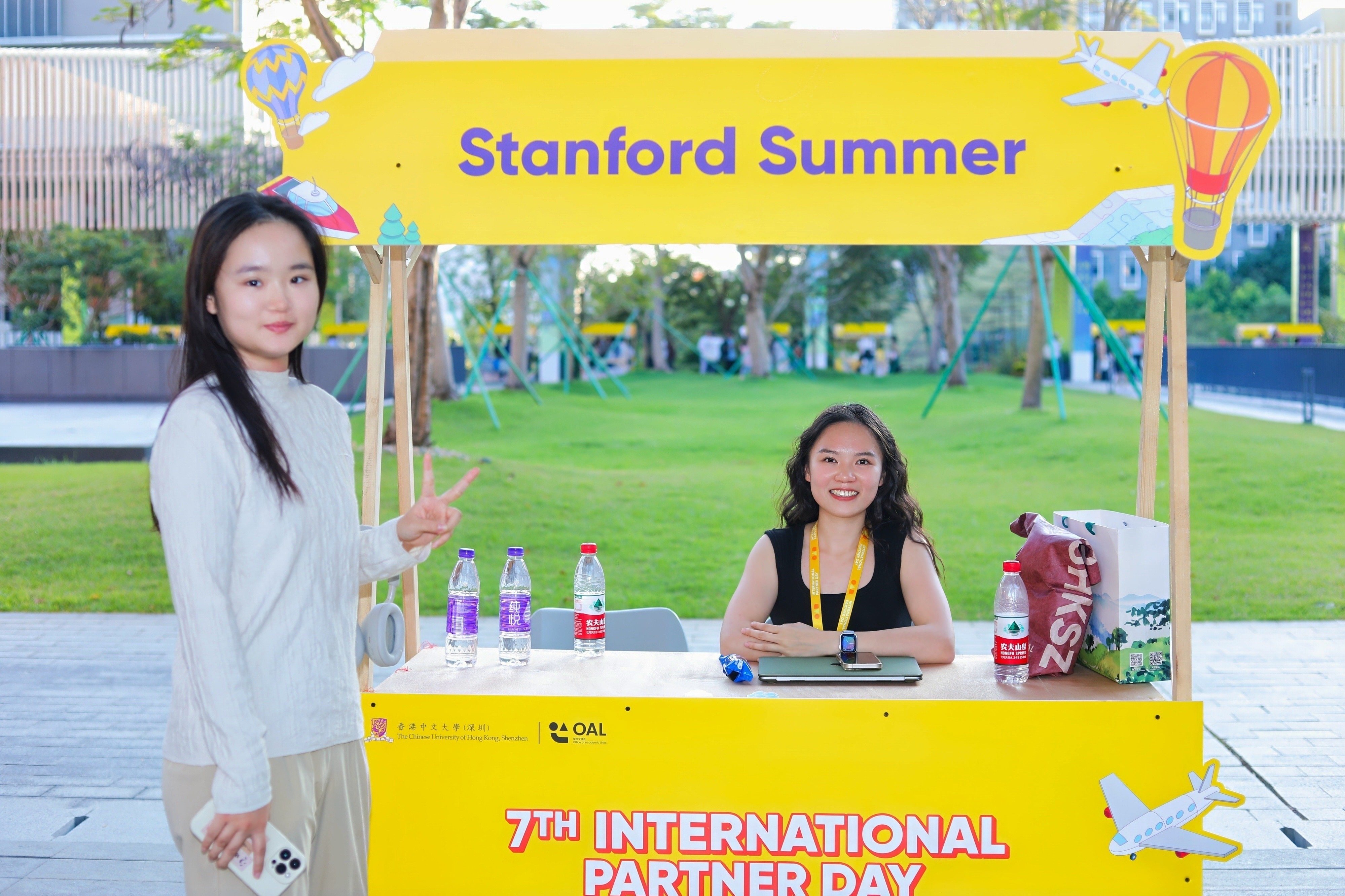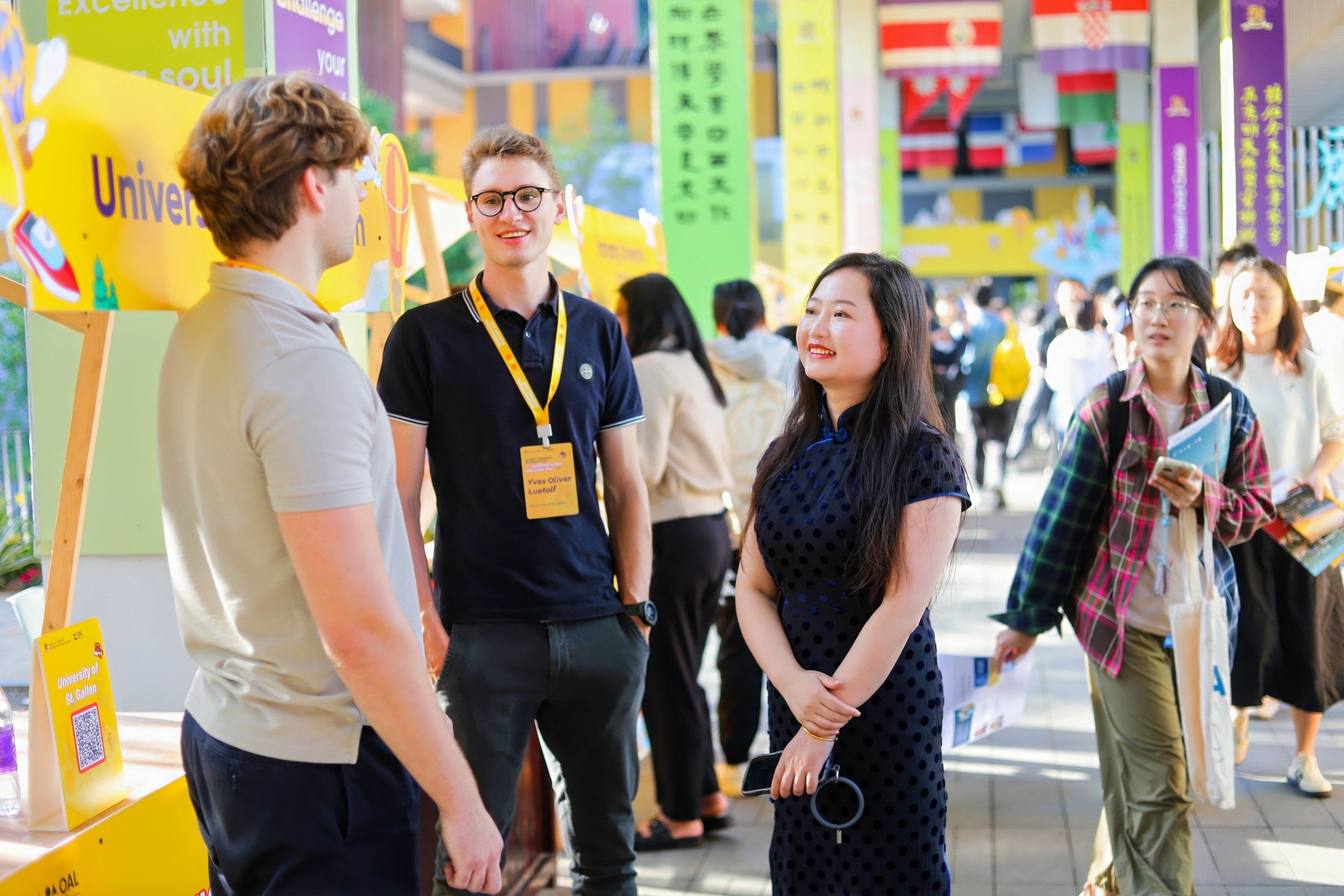 當日下午,來自合作院校的項目負責人與學生代表共計60余人在大學國旗長廊設置展位,為港中大(深圳)的學子們提供現(xiàn)場項目咨詢。