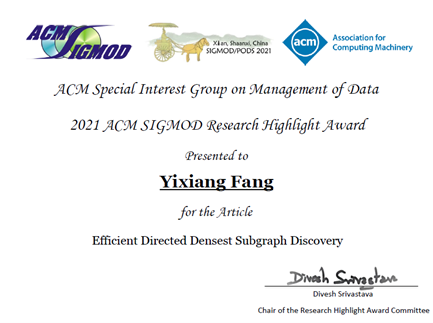方一向教授斬獲2021 ACM SIGMOD Research Highlight Award