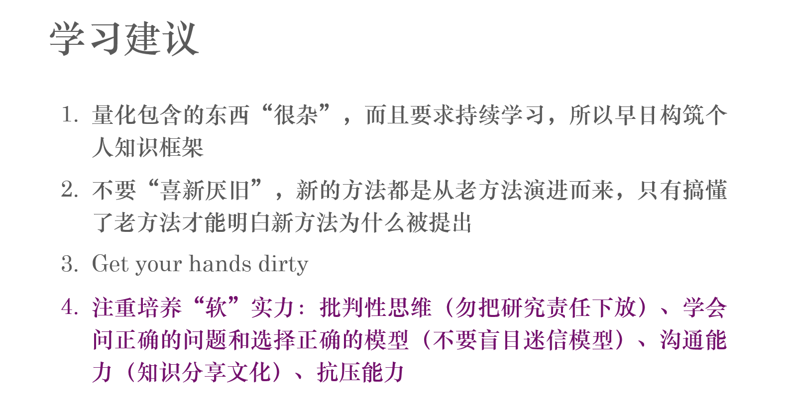 給學生分享量化學習建議的 PPT