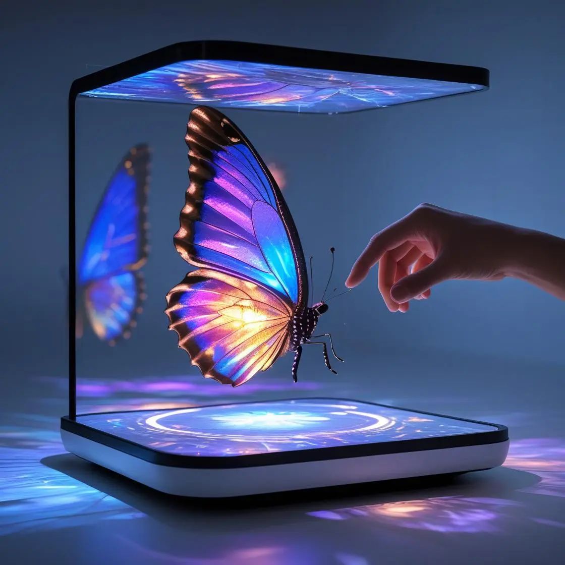 靳羽華教授實驗室的另一項“黑科技”是三位立體顯示裝置。三維立體顯示裝置是人機交互領域的另一個重要研究方向。這種裝置可以通過特殊的光學設計,讓虛擬影像呈現(xiàn)出真實的三維效果,用戶無需佩戴任何設備即可裸眼觀看。與傳統(tǒng)全息投影不同,靳羽華教授的團隊嘗試結合AI與人機交互技術、先進光學技術以及先進光學材料,實現(xiàn)“可觸碰的3D立體影像”。“當我們觸摸一只虛擬蝴蝶時,傳感器可以傳遞真實的振翅觸感。難點在于觸覺反饋與視覺信號的同步。我們訓練AI模型實時解析用戶手勢,可以讓三維立體影像能夠實時跟進人體的手勢產生響應,此外還會利用先進的人機交互技術產生對應觸感。”