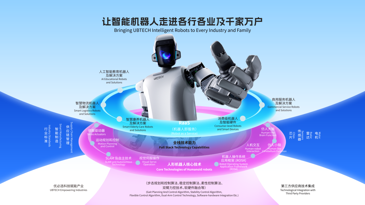 此次入選的案例以優必選科技(UBTECH)為研究對象,該企業是人形機器人和智能服務機器人領域的領航企業。秉承著“讓智能機器人走進千家萬戶,讓人類的生活方式變得更加便捷化、智能化、人性化”的使命,優必選布局了人形機器人全棧式技術,并在此基礎上開展智能服務機器人解決方案的研發、設計、智能生產和商業化應用,涵蓋了多個行業的企業級和消費級應用場景。2023年12月29日,優必選(股票代碼:9880.HK)于香港交易所主板掛牌上市。