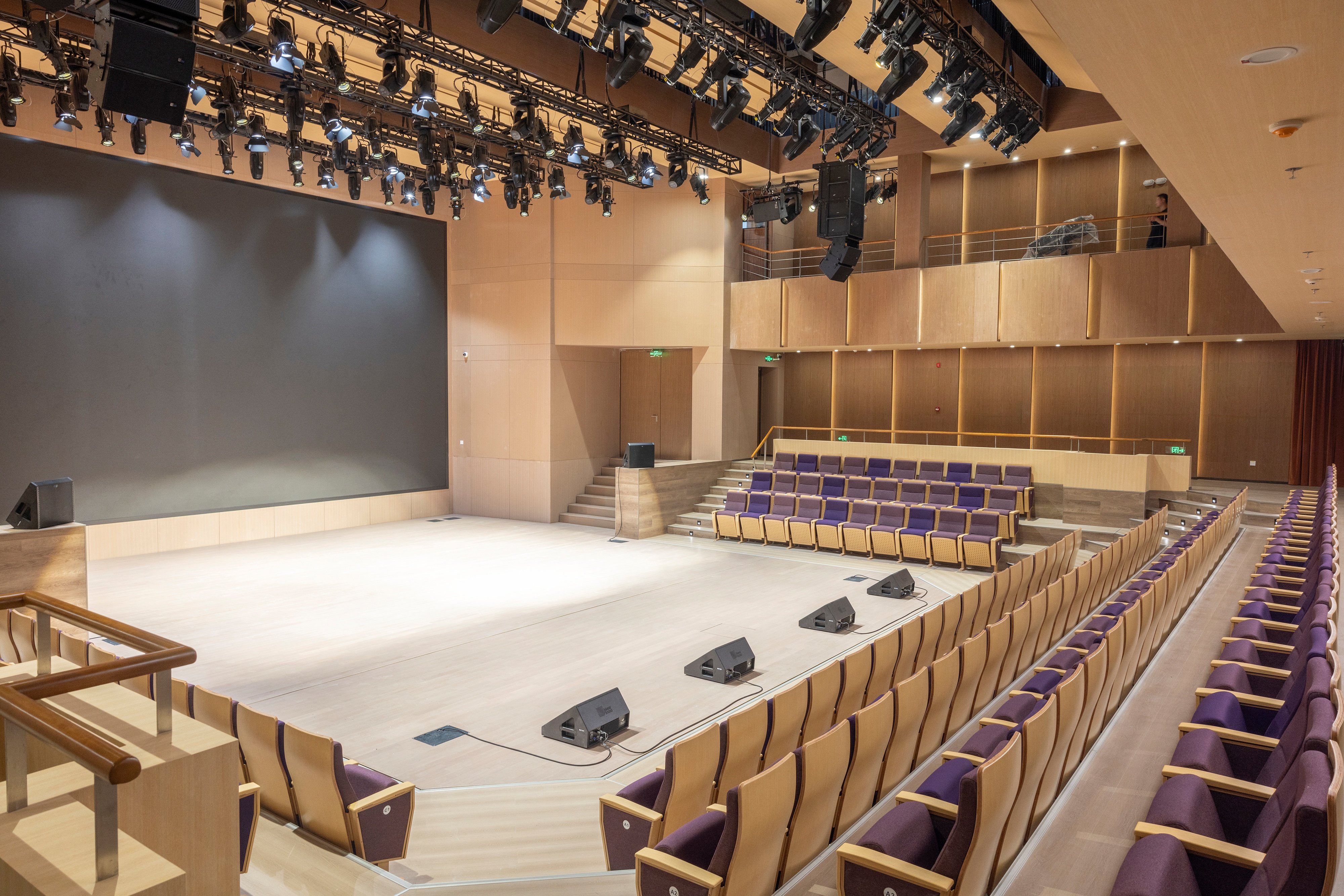 賞樂樓與演藝樓設(shè)有818座劇院、800座音樂廳、200座現(xiàn)代音樂廳及圖書館、行政與教學(xué)空間。劇院、音樂廳及錄音棚采用“房中房”、琴房與排練廳采用“盒中盒”結(jié)構(gòu),結(jié)合消聲減震技術(shù),確保頂級(jí)聲學(xué)效果。音樂廳配備60音栓管風(fēng)琴,達(dá)國(guó)際專業(yè)標(biāo)準(zhǔn)。場(chǎng)館在服務(wù)教學(xué)的同時(shí)也聯(lián)動(dòng)國(guó)內(nèi)外藝術(shù)機(jī)構(gòu),打造粵港澳大灣區(qū)高端文化藝術(shù)平臺(tái)。