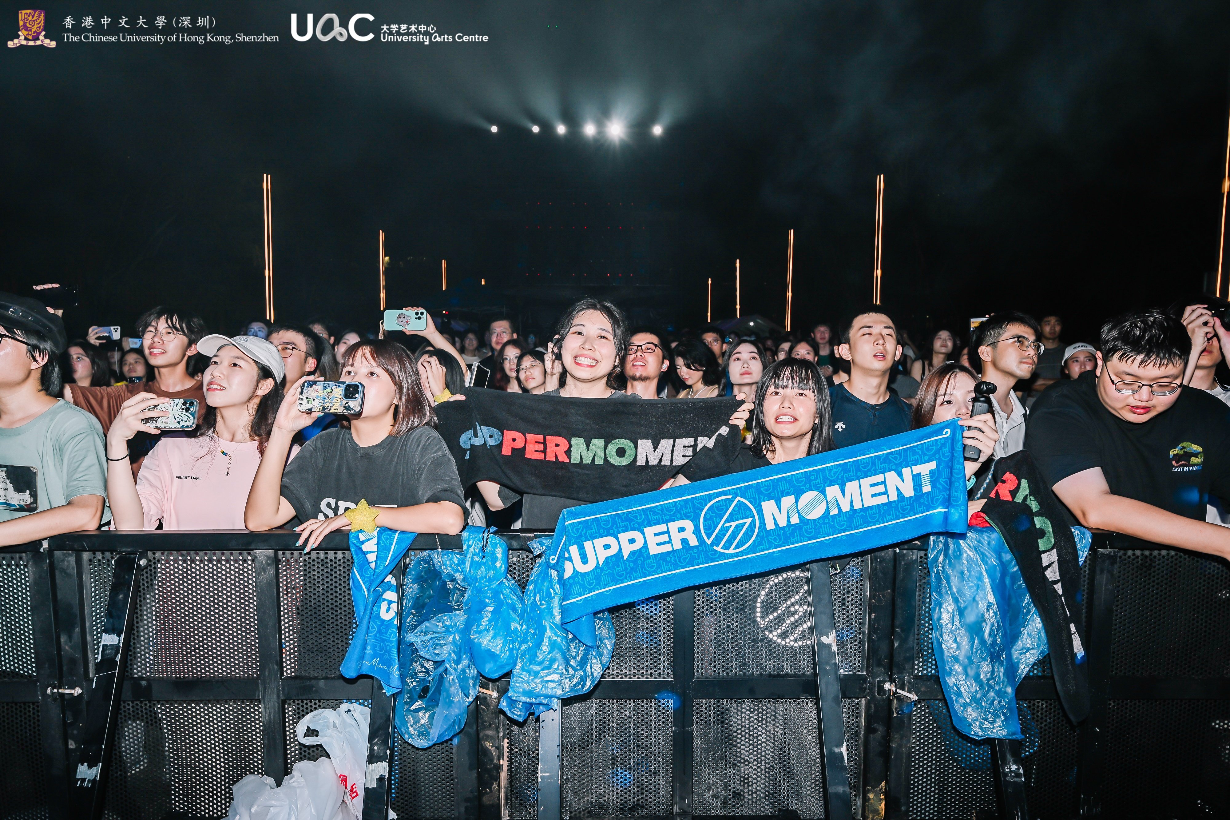 現場觀眾在音樂與光影的交織中釋放熱情,揮舞熒光棒、齊聲合唱,讓音符與歡笑在校園夜空久久回蕩。燃點音樂節不僅是一場視聽盛宴,更是香港中文大學(深圳)校園文化活力的生動寫照,為新學期注入了滿滿的激情與能量。