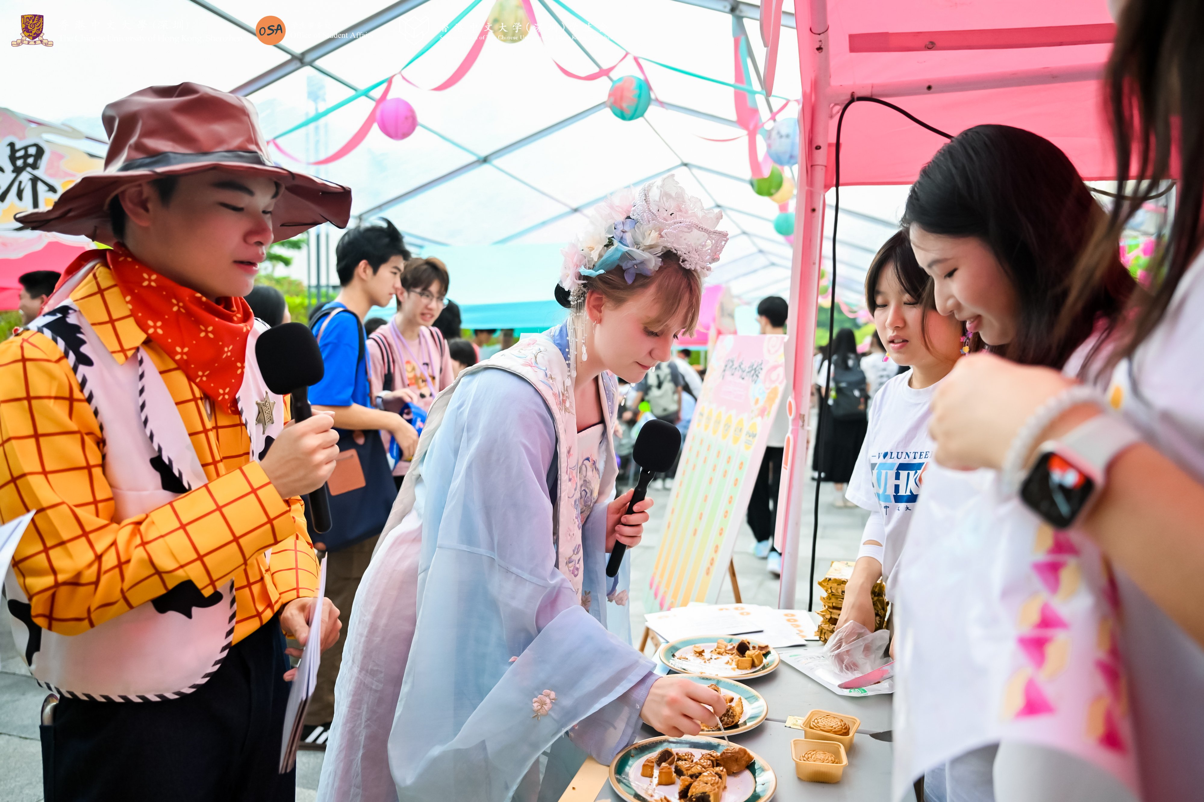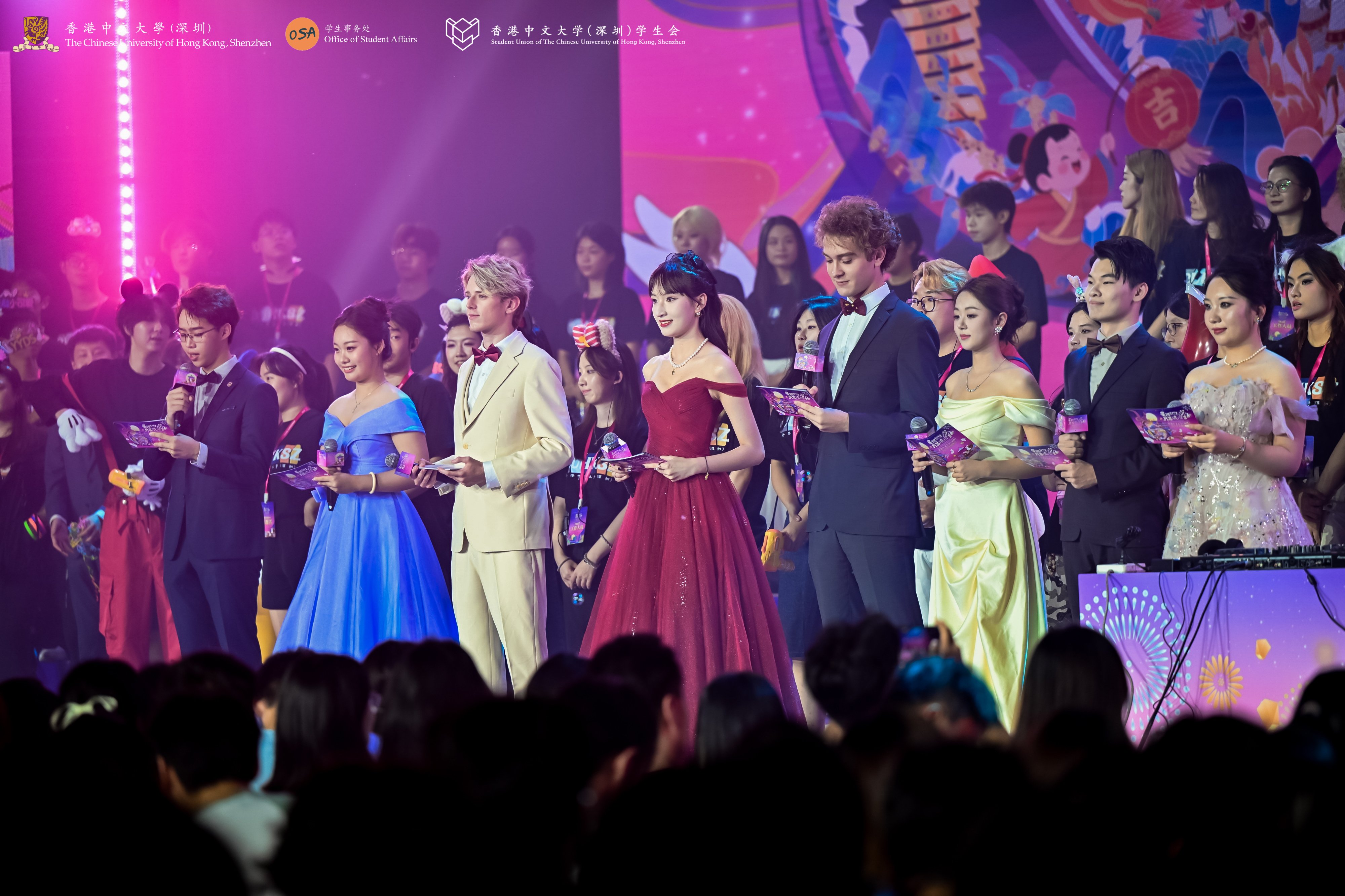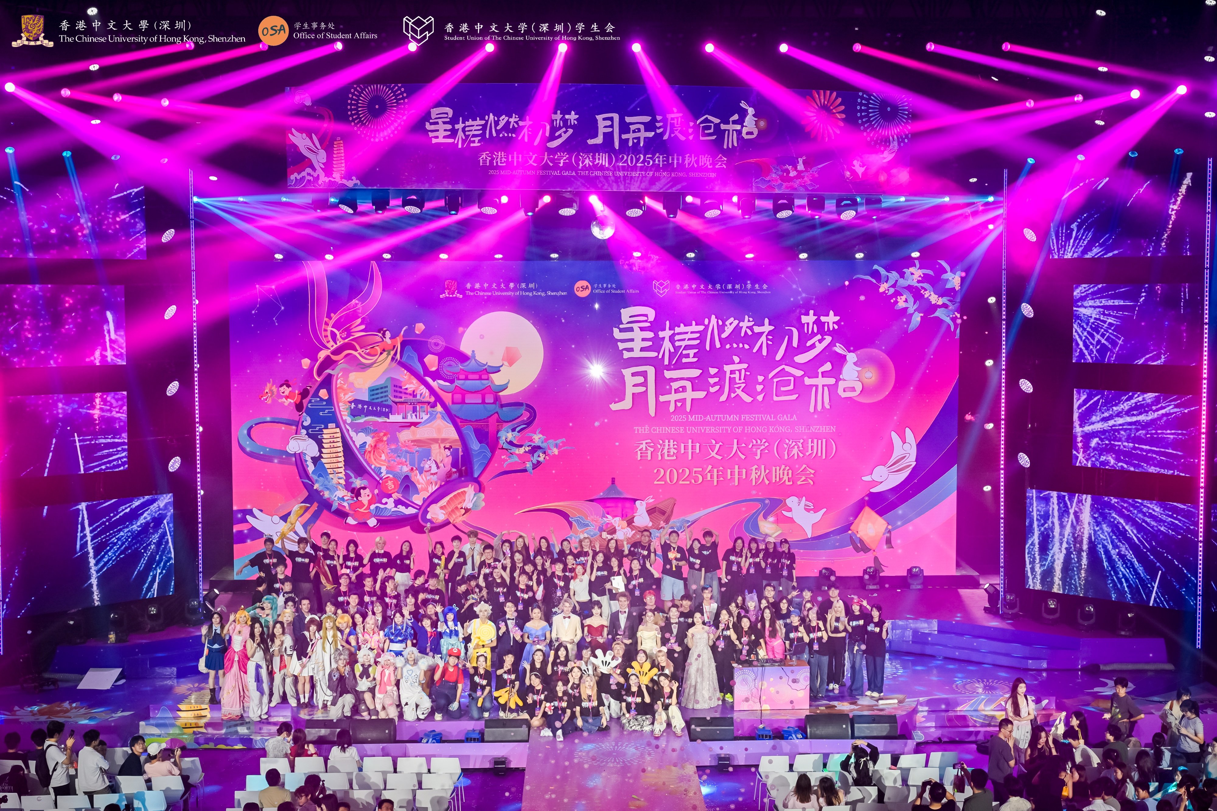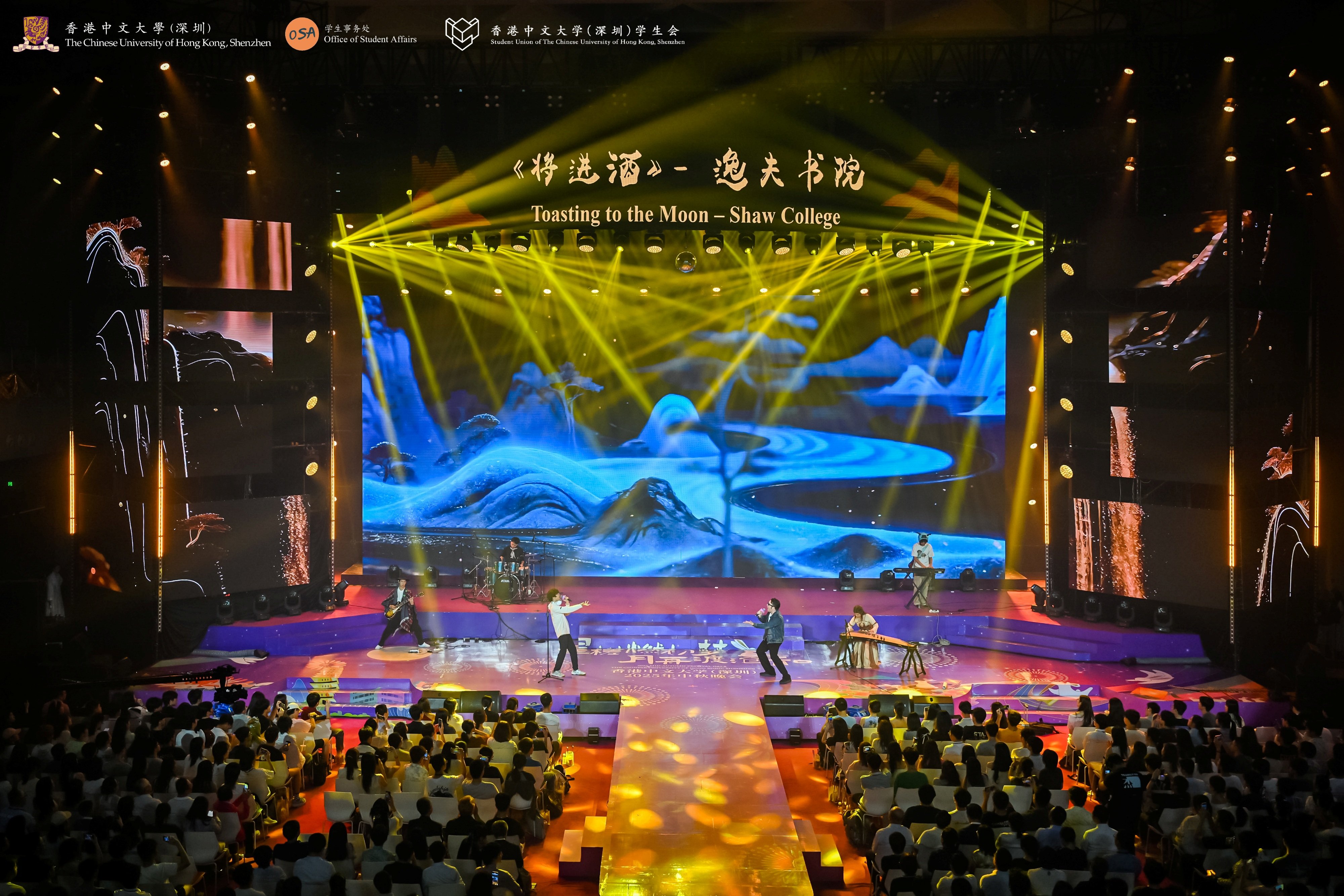 9 月 26 日,香港中文大學(深圳)2025 年中秋晚會成功舉辦。晚會由學生事務處與學生會聯合主辦,以 “星槎燃初夢,月舟渡滄和” 為主題,師生齊聚提前歡慶中秋。本年度中秋晚會活動分為中秋晚會與游園集市兩部分,共500多位師生參與演職工作。