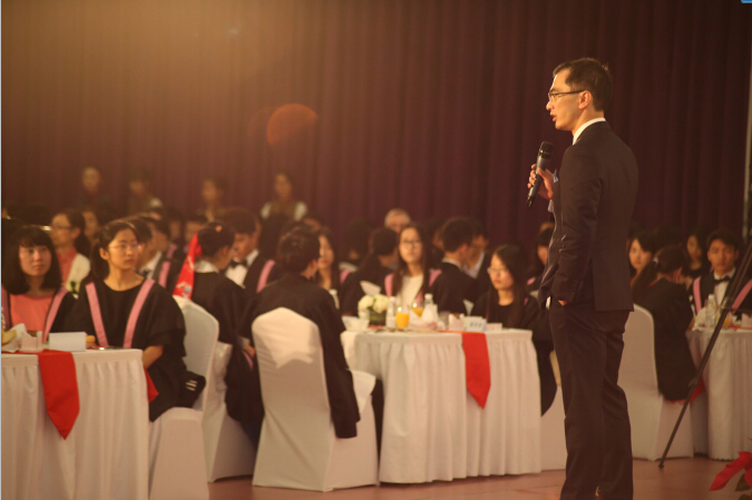 ? ? ? ?副院長王家徹教授首先向同學們提出了三項要求。其一,學期結束的同時也是一年的結束,在年末給自己寫一篇文章,回顧反思這一年的生活。其二,與疏遠的朋友和好,因為他們是你人生中最重要的財富之一。其三,大膽向父母吐露你的愛意,不要將情感憋在自己心底。
