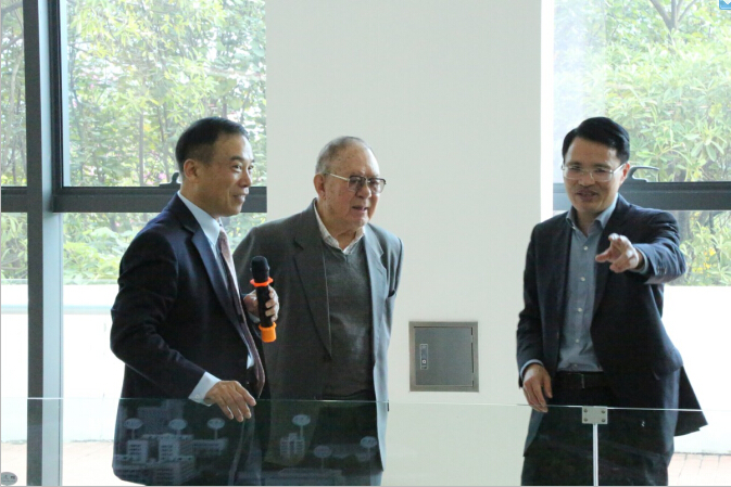 ? ? ? ?香港中文大學(深圳)校長徐揚生院士、副校長阮健驄先生、協理副校長李霞教授以及協理副校長李學金教授陪同宋健首長一行參觀了我校。