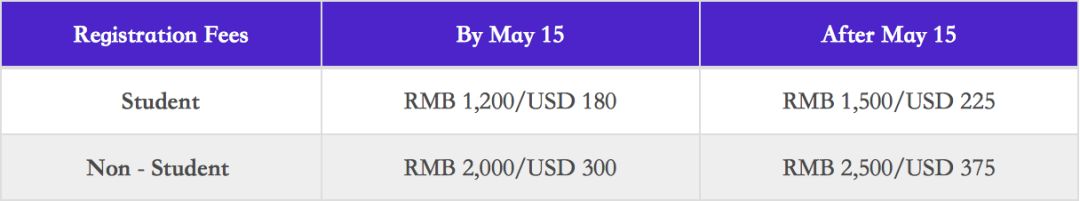 報名人需要繳納一定的報名費。在5月15日之前報名參會者可享受早鳥優惠價。請注意參會名額有限,先到先得。