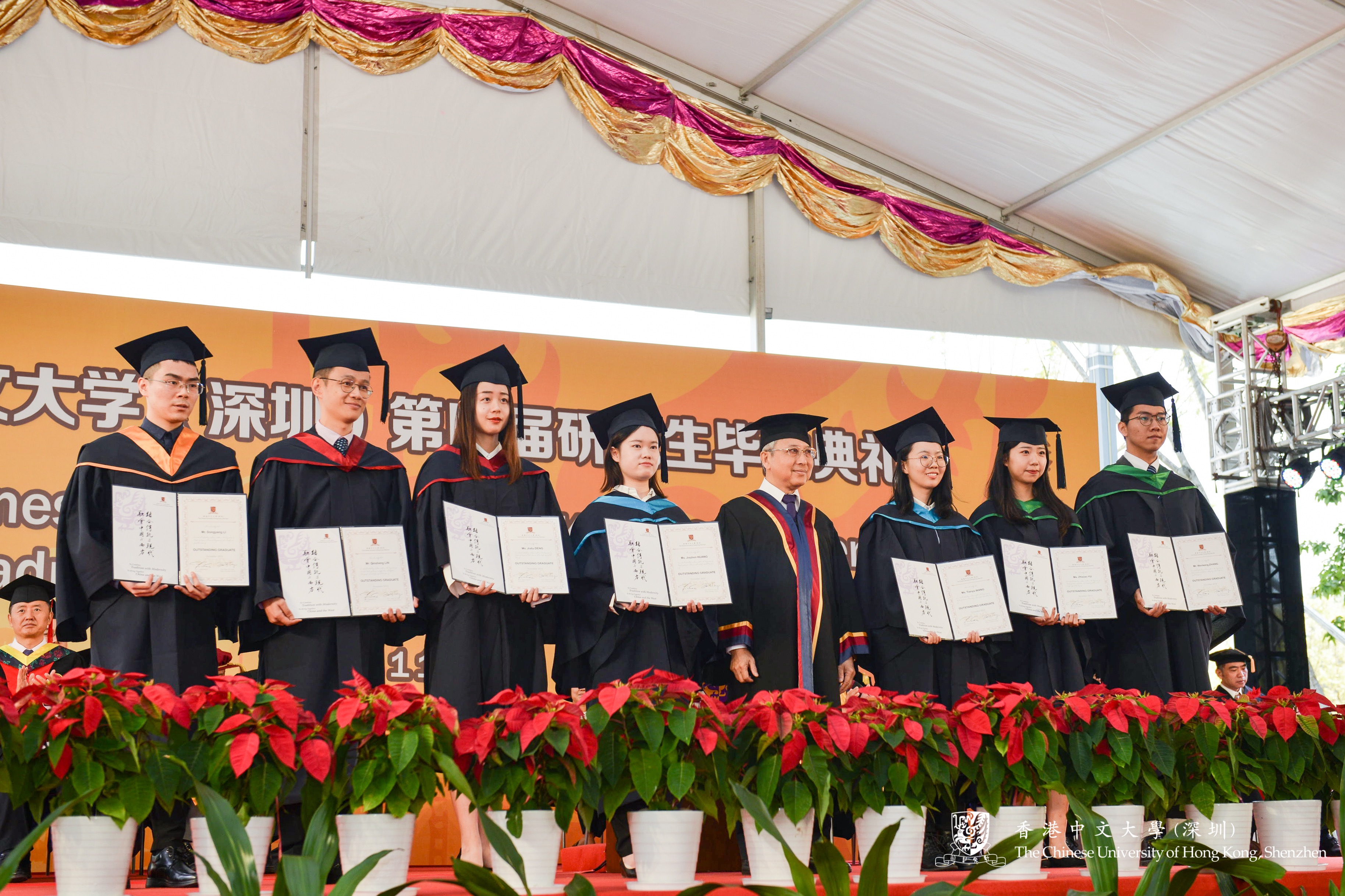 ? ? ? ?隨后,由港中大(深圳)理事會成員廖柏偉教授為優(yōu)秀畢業(yè)生頒發(fā)證書,獲獎的八位同學分別是:同聲傳譯文學碩士張文康、翻譯文學碩士于芷霄、會計理學碩士王天羽、金融學理學碩士黃潔珍、數(shù)據(jù)科學理學碩士鄧嘉圖、供應鏈與物流管理高級管理人員理學碩士林欽勝、金融工程理學碩士李東陽、經(jīng)濟學理學碩士王瑛。