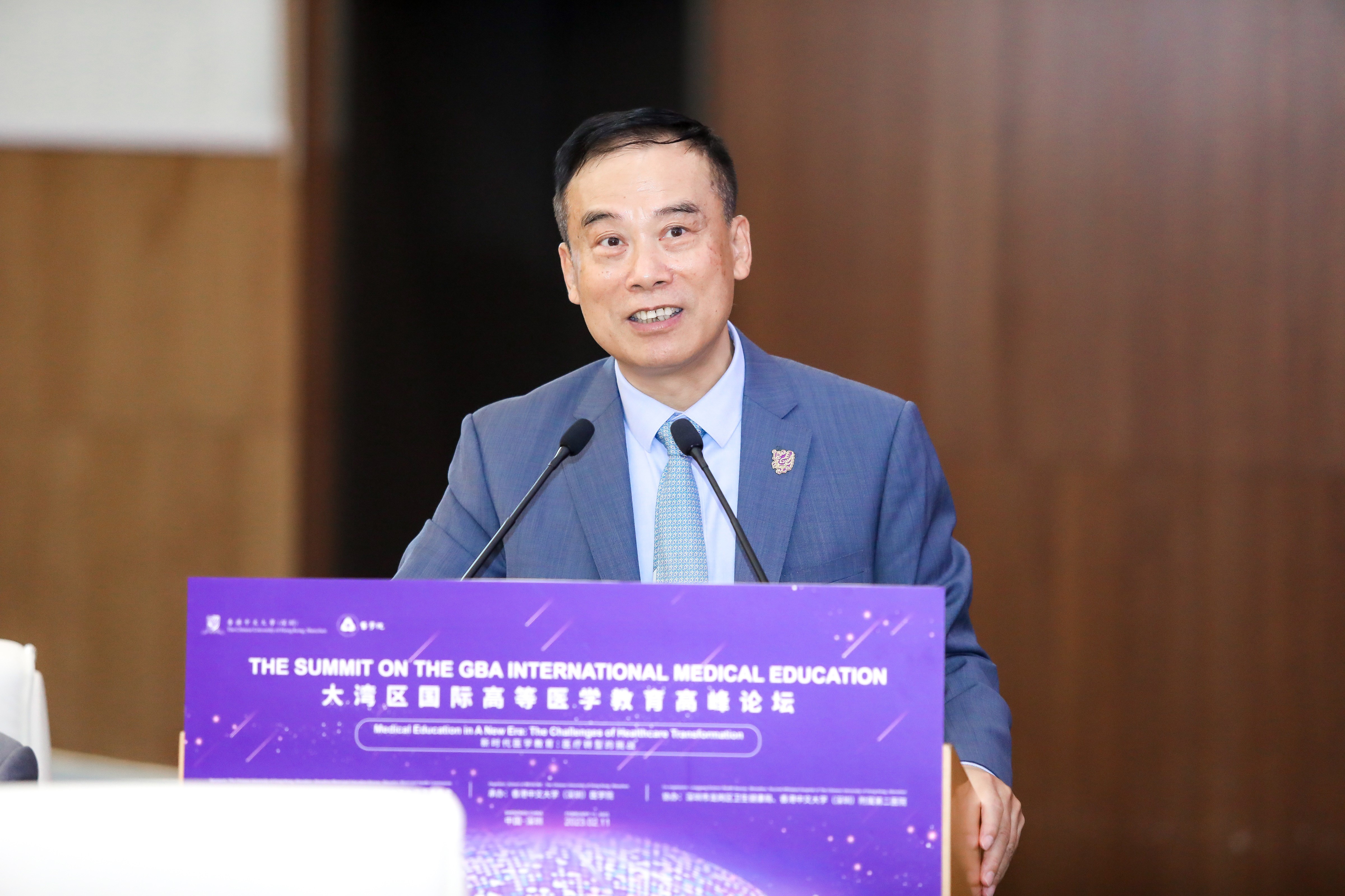 為積極探索新時代背景下醫學教育及醫療轉型的挑戰與機遇,尋求新時代醫學教育的新模式、新路徑,2月11日,由香港中文大學(深圳)、深圳市教育局、深圳市衛生健康委員會主辦,香港中文大學(深圳)醫學院承辦的“大灣區國際高等醫學教育高峰論壇——新時代醫學教育:醫療轉型的挑戰”在香港中文大學(深圳)舉辦。本次論壇由香港中文大學(深圳)校長徐揚生教授擔任大會主席,香港中文大學(深圳)醫學院創院院長鄭仲煊教授擔任大會執行主席,香港中文大學校長&香港中文大學(深圳)理事會理事長段崇智教授出席活動。邀請到國家衛健委領導、深圳市政協副主席吳以環女士等省市領導、國內外醫學院校領導、大學主管領導及各部門負責人出席活動。