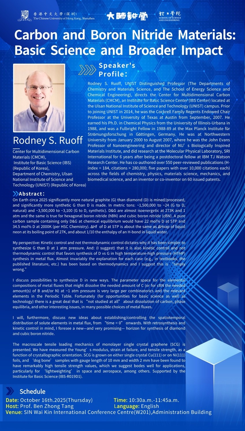 【大師講堂】碳與氮化硼材料: 基礎(chǔ)科學(xué)與廣泛影響