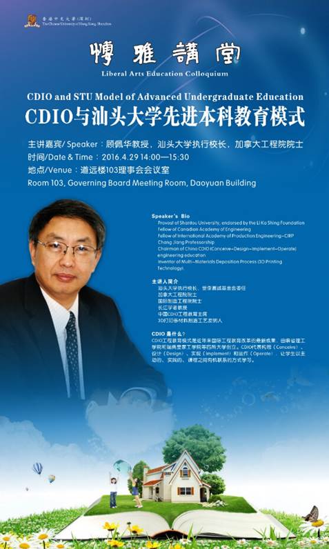演講主題:CDIO與汕頭大學先進本科教育模式