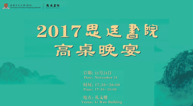 活動預告 | 思廷書院2017年度高桌晚宴 2017-11-24 活動預告 活動詳情如下: 活動日期:2017年11月24日周五 活動時間:17:30-20:00 活動地點:禮文樓 *關于著裝 內著商務正式裝,外著學生袍 ?女生可于內著深色小禮服裙,外著學生袍;搭配深色皮鞋 ?男生可于內著深色西裝,外著學生袍;搭配領結或領帶,與深色皮鞋 ? ? ? 思廷書院,與你相伴