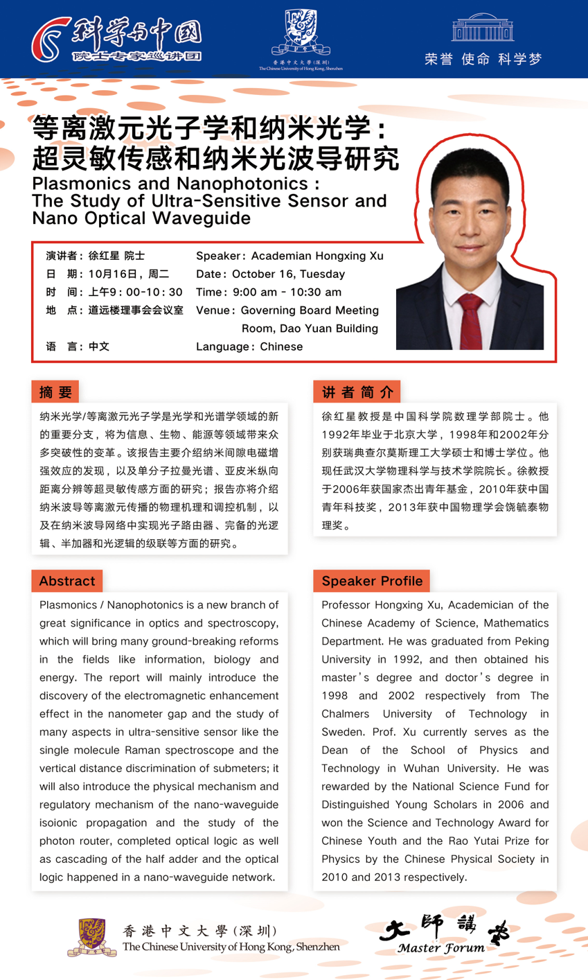 【大師講堂】 等離激元光子學(xué)和納米光學(xué):超靈敏傳感和納米光波導(dǎo)研究