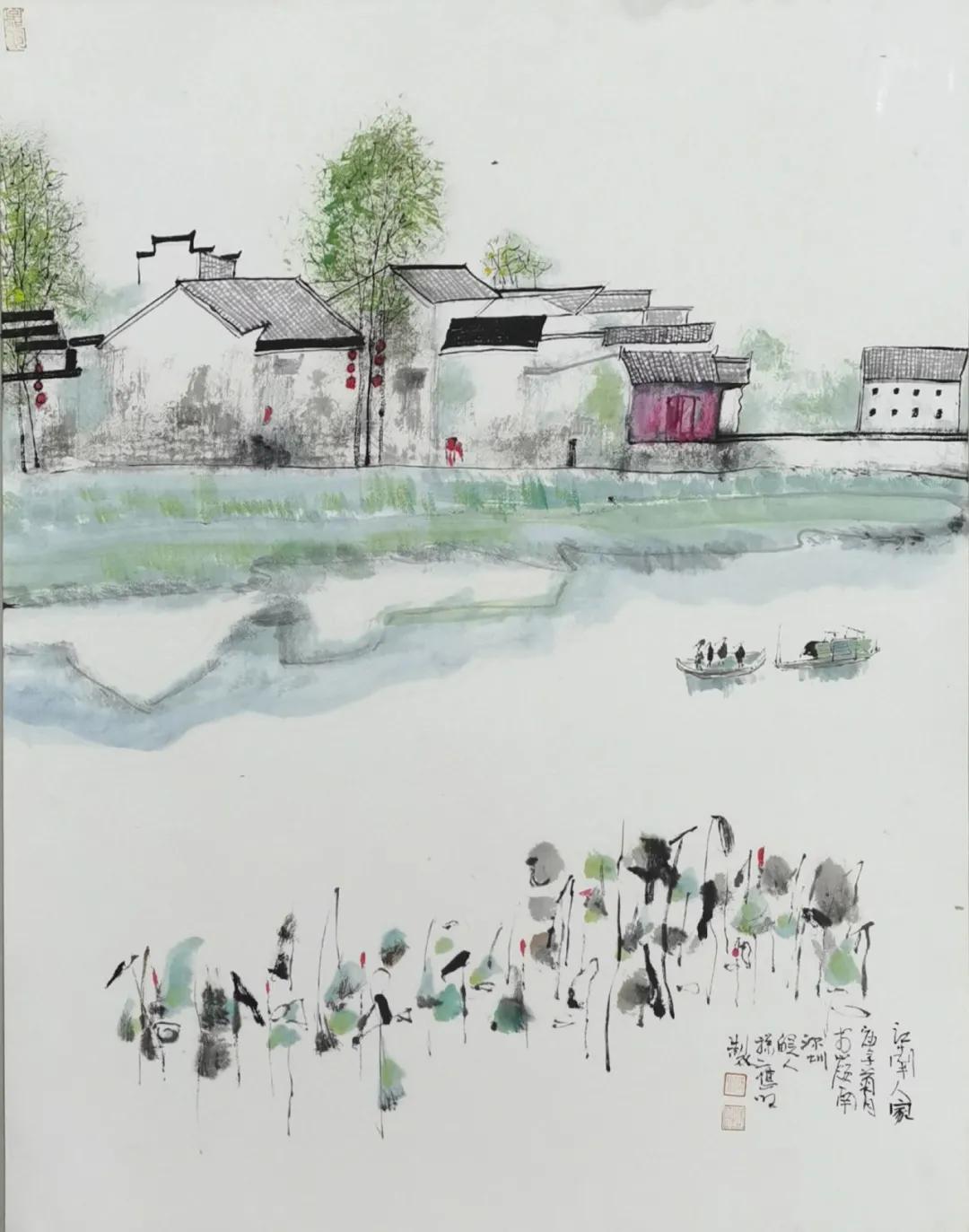 夢里水鄉是一種意境,走進應旺先生的水鄉小品,可以感受到如夢境般的江南流淌的是一種靈動,心的靈動,清新、明快。在江南生活多年的體驗,對應旺先生來說是一種積累與滋養,筆下的水鄉有一種江南人熟悉的情韻,表現的不只是生活感受,還有一種文人情懷。墨韻間融入一些亮麗的色彩,相映成趣,憑添了生活里的陽光感,令人賞心悅目。