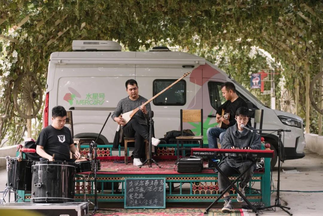 2020年9月,李星宇再次帶領團隊出發,從北京開著他的“水星號”,一路向西前往位于塔克拉瑪干沙漠的小城沙雅,在美麗的葡萄架下做了三天的音樂演出直播。