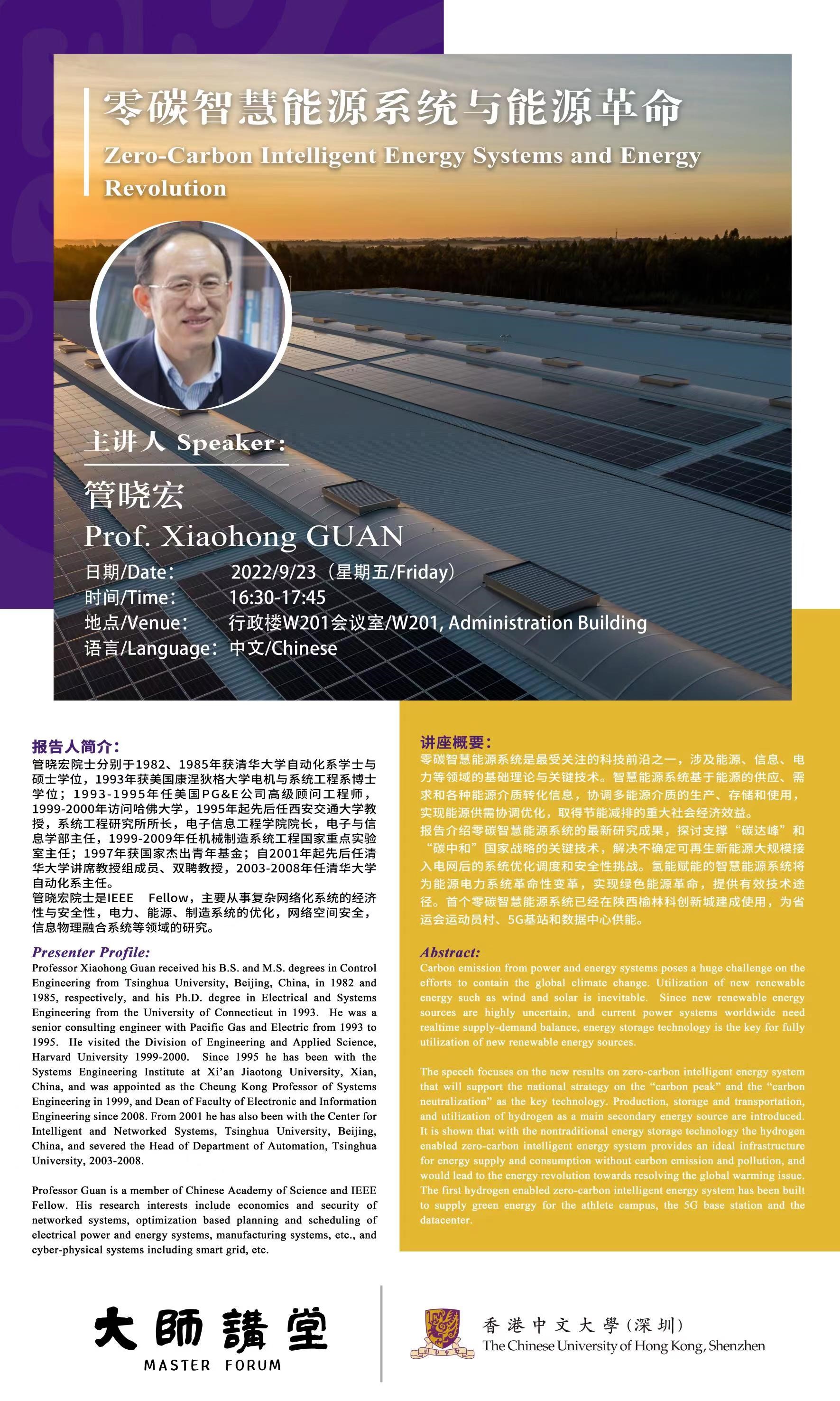 【大師講堂】零碳智慧能源系統與能源革命